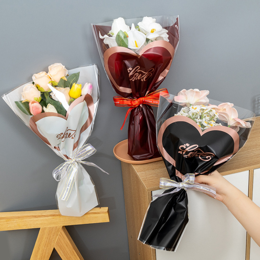 กระดาษห่อดอกไม้คุณภาพสูง 50 แผ่น กระดาษห่อดอกไม้หลายก้าน ทรงสี่เหลี่ยมคางหมู กระดาษห่อดอกไม้