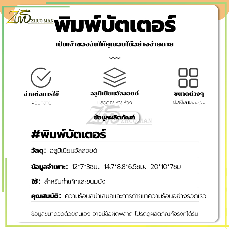 พิมพ์ขนมปัง พิมพ์บัตเตอร์ พิมพ์โลฟ พิมพ์อบขนม พิมพ์อลูมิเนียมอบขนม วัสดุเกรดอาหาร วัสดุเบา ให้ความร้อนสม่ำเสมอ ดีไซน์ขอบมน ไม่เจ็บมือ