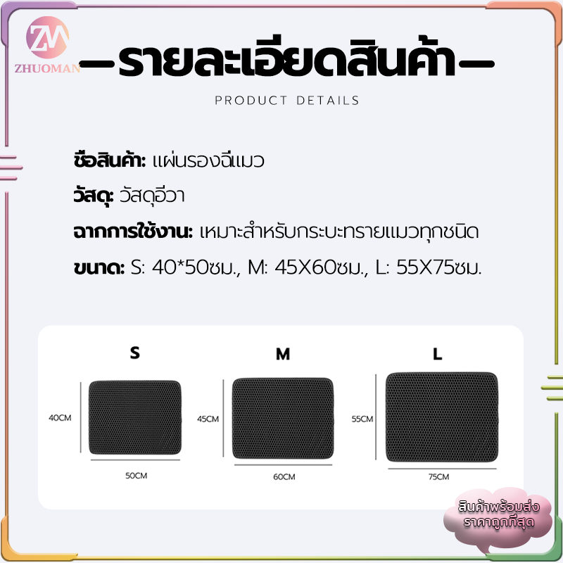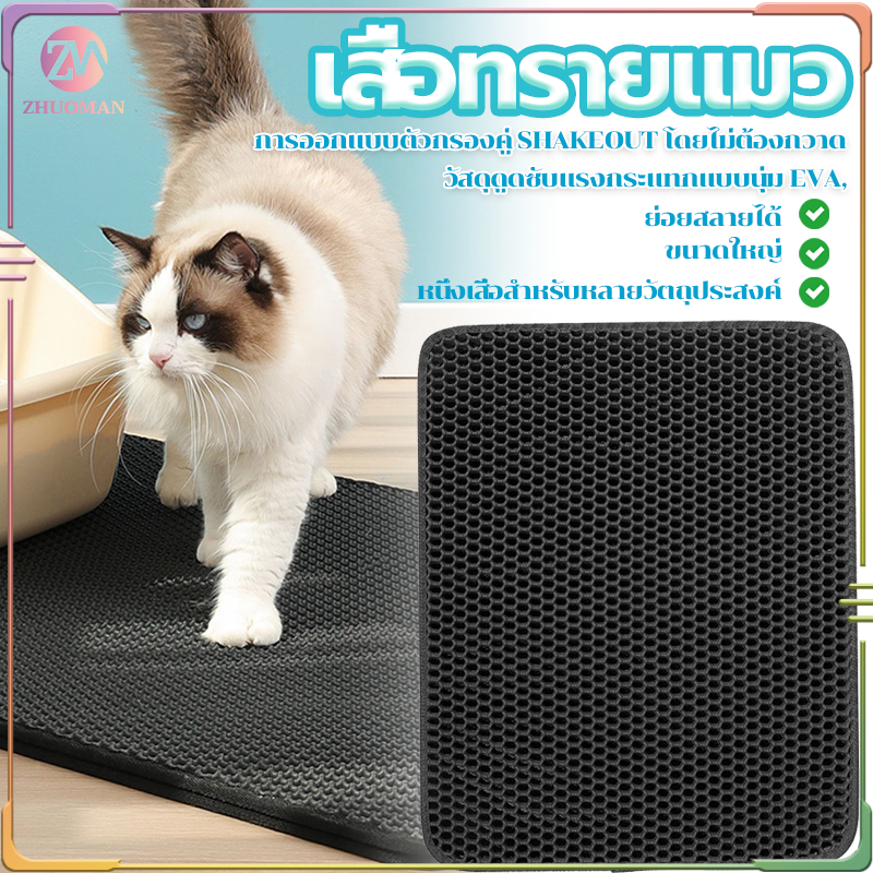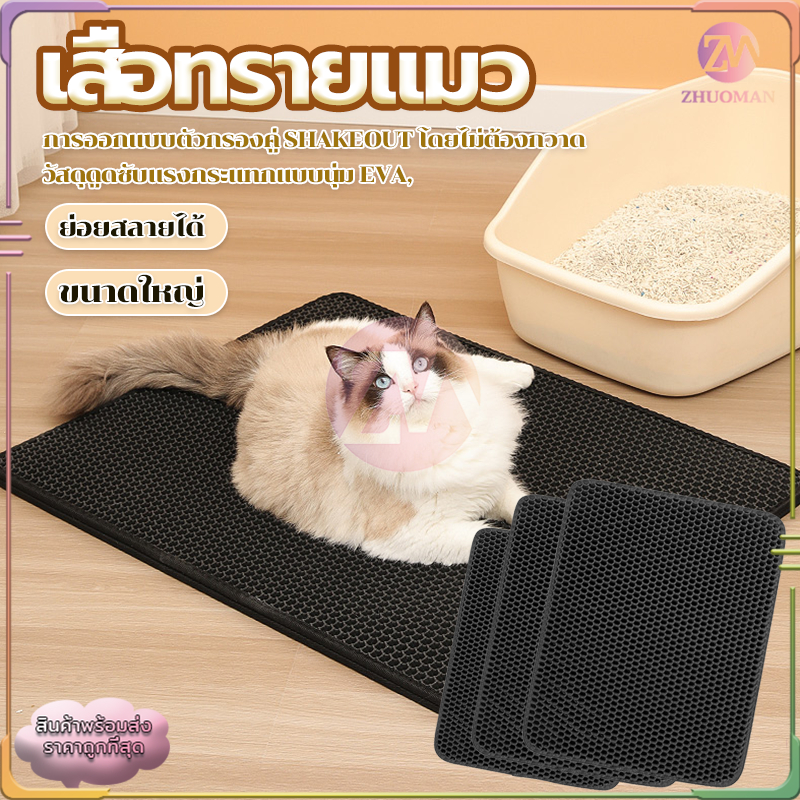 พรมดักทรายแมว ดักทรายแมว 2ชั้น EVA แผ่นรองทรายแมว/ที่รองทรายแมว หลายขนาด พื้นที่แมวน้ำขนาดใหญ่ นุ่ม สบาย.