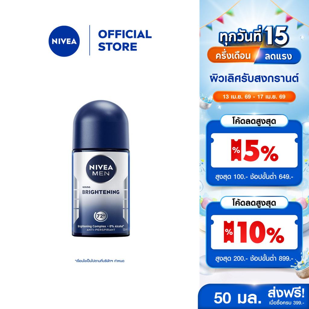 นีเวีย เมน ไบรท์เทนนิ่ง โรลออน 50 มล. NIVEA โรลออนผู้ชาย roll on