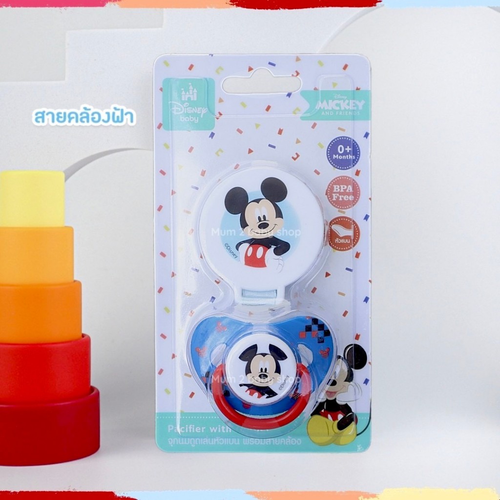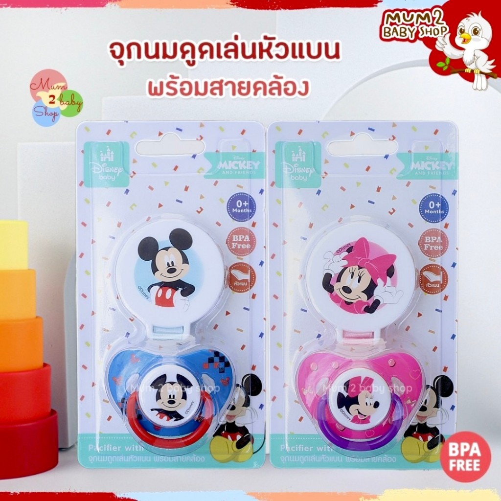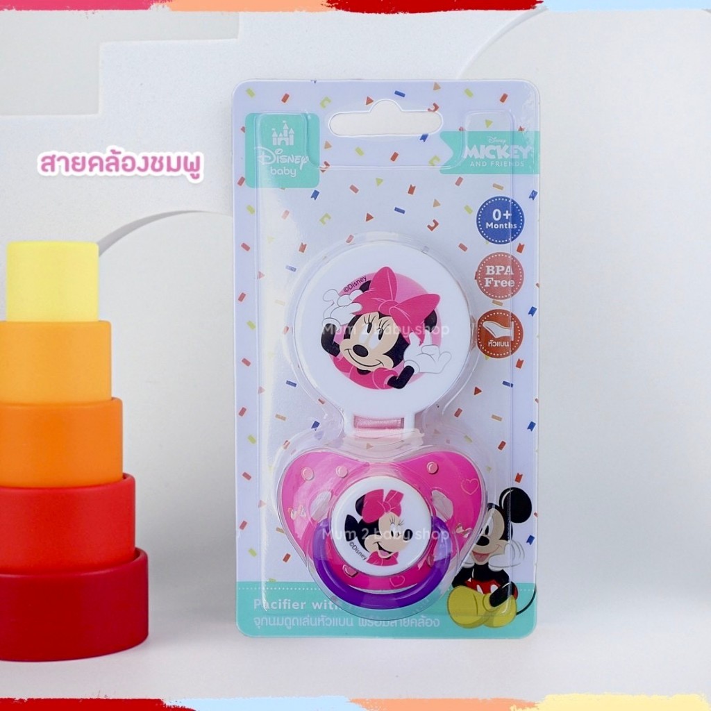 เบบี้แคร์ จุกหลอก จุกนมดูดเล่น หัวแบน มิกกี้ มินนี่ พร้อมฝาครอบ มีสายคล้อง