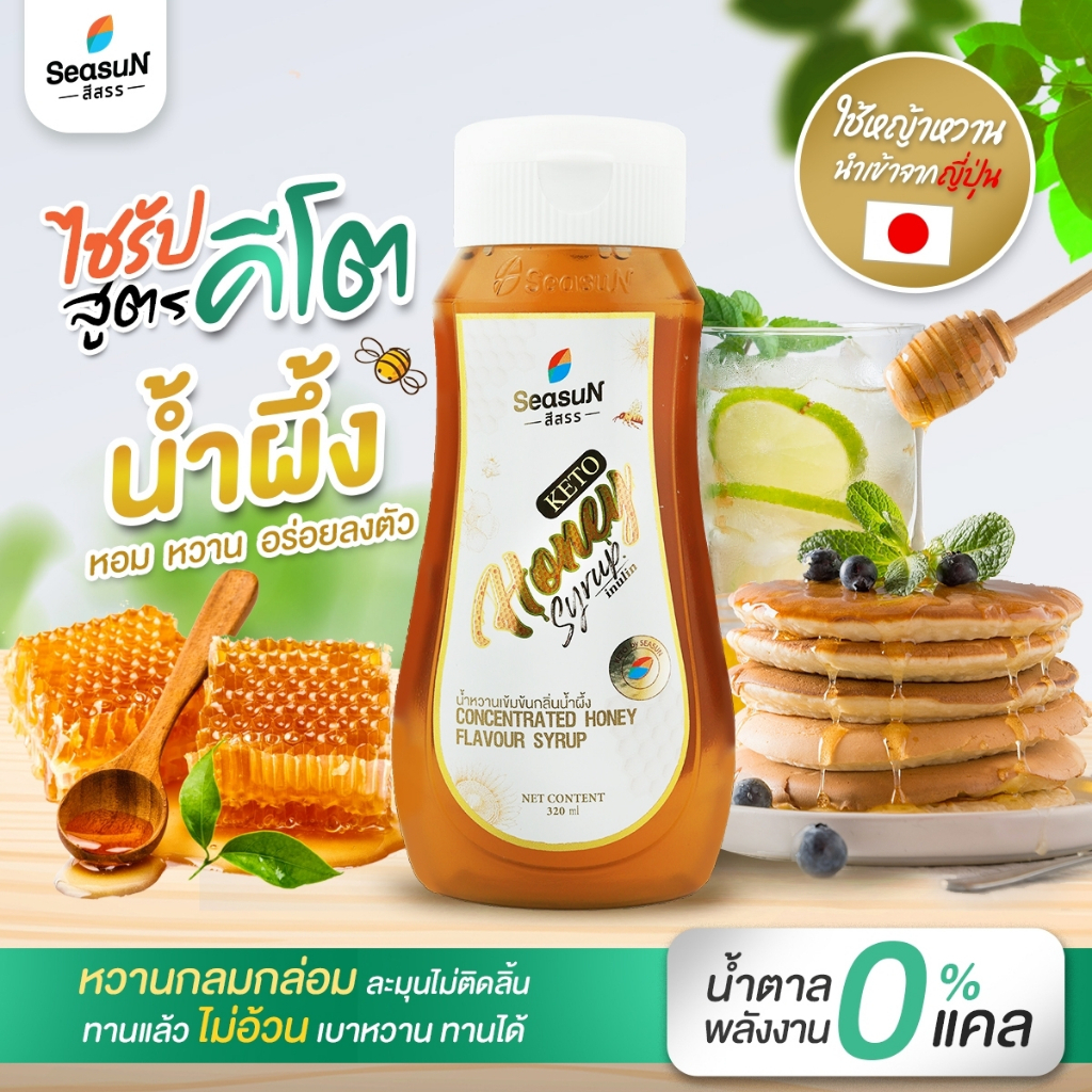 ไซรัป Seasun สีสรร ไซรัปหญ้าหวาน น้ำเชื่อม น้ำหวาน น้ำตาลหญ้าหวาน 320 ml