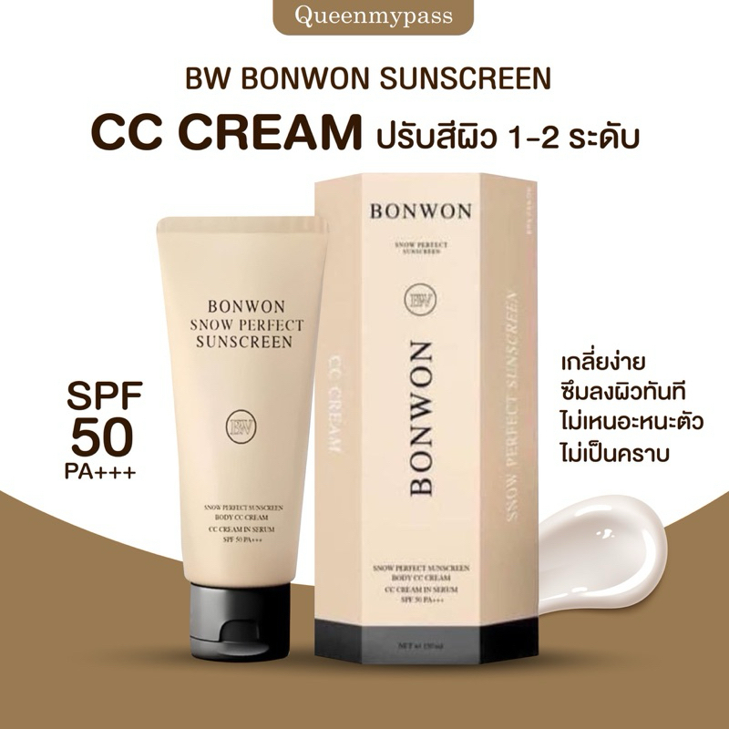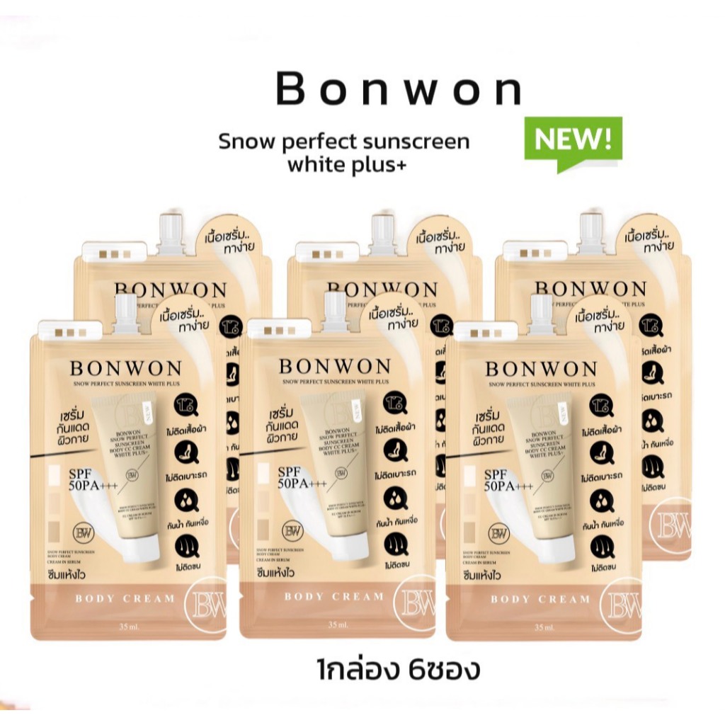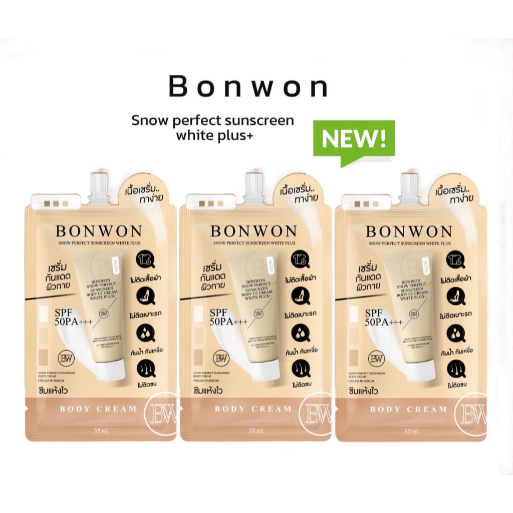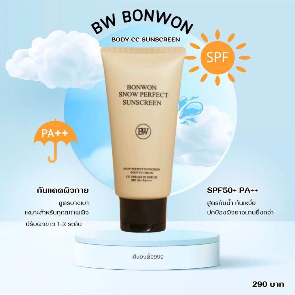 กันแดดบอนวอน BONWON SNOW PERFECT SUNSCREEN โทนอัพปรับสีผิว 1 ระดับ กันน้ำ กันเหงื่อ ไม่ติดขน SPF50PA++