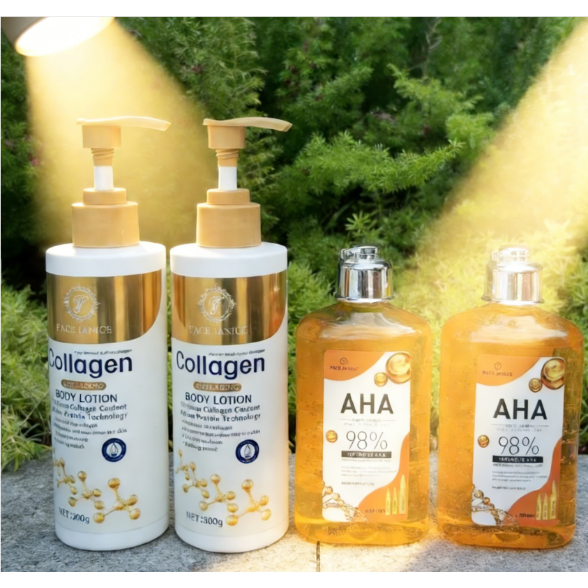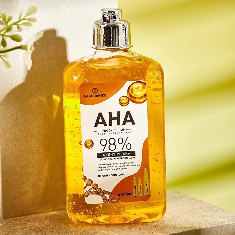 【1 แถม 1】AHA เซรั่มผิวขาว98% Body serum 260ml + FACE JANICE โลชั่นคอลลาเจนทองคำ 300ml ช่วยให้ผิวกระจ่างใส ผิวกายชุ่มชื้น