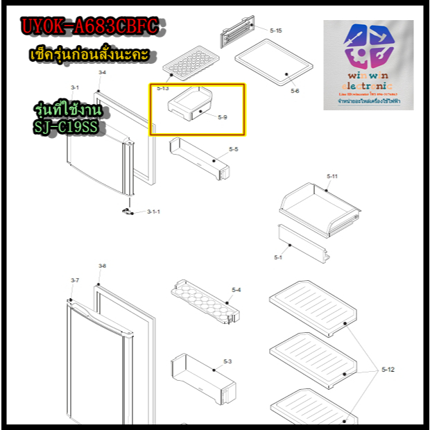 ขายอะไหล่แท้//UYOK-A683CBFCถาดใส่น้ำแข็งตู้เย็น/ยี่ห้อชาร์ป SHARPตำแหน่ง5-9/*รุ่นที่ใช้งาน SJ-C19SS