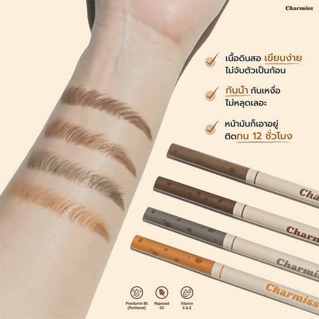 Charmiss Brookie Brow Slim pencil 0.05g.ดินสอเขียนคิ้วติดทน กันน้ำ เขียนง่าย ให้ลุคธรรมชาติ