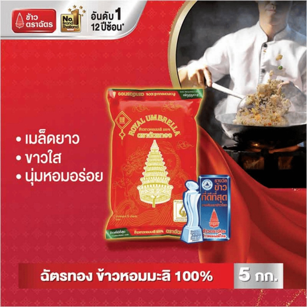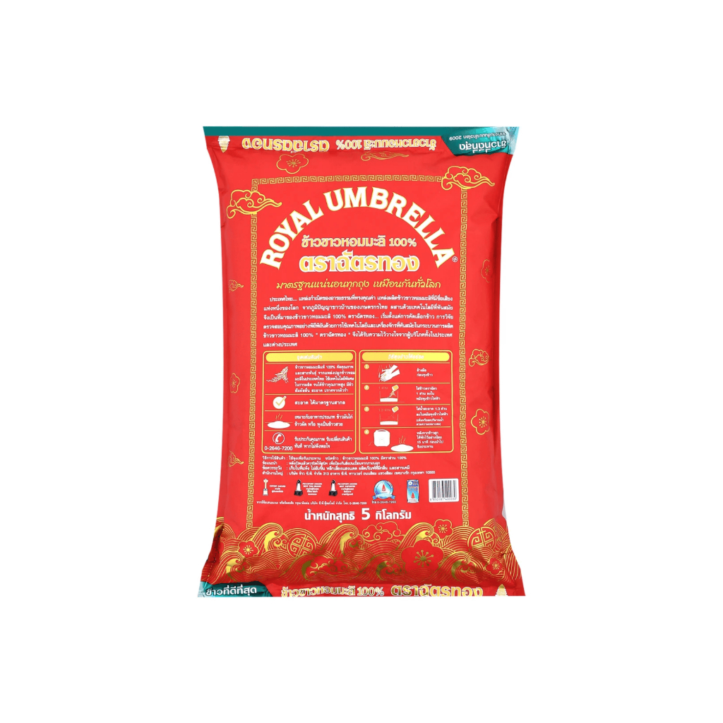 ฉัตรทอง🔥5 กิโลกรัม ข้าวตราฉัตรหอง ผลิตจากข้าวหอมมะลิแท้ 100% เมล็ดใสเงาเรียงสวย กลิ่นหอม เนื้อข้าวนุ่มฟูอร่อย พรีเมี่ยม
