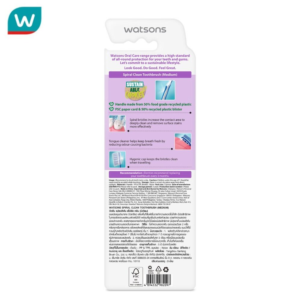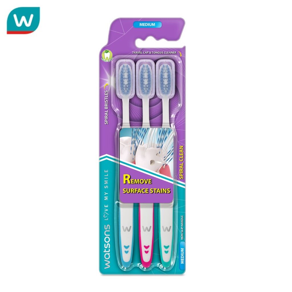 Watsons วัตสัน แปรงสีฟัน สไปรัล คลีน (มีเดียม) 3ด้าม.