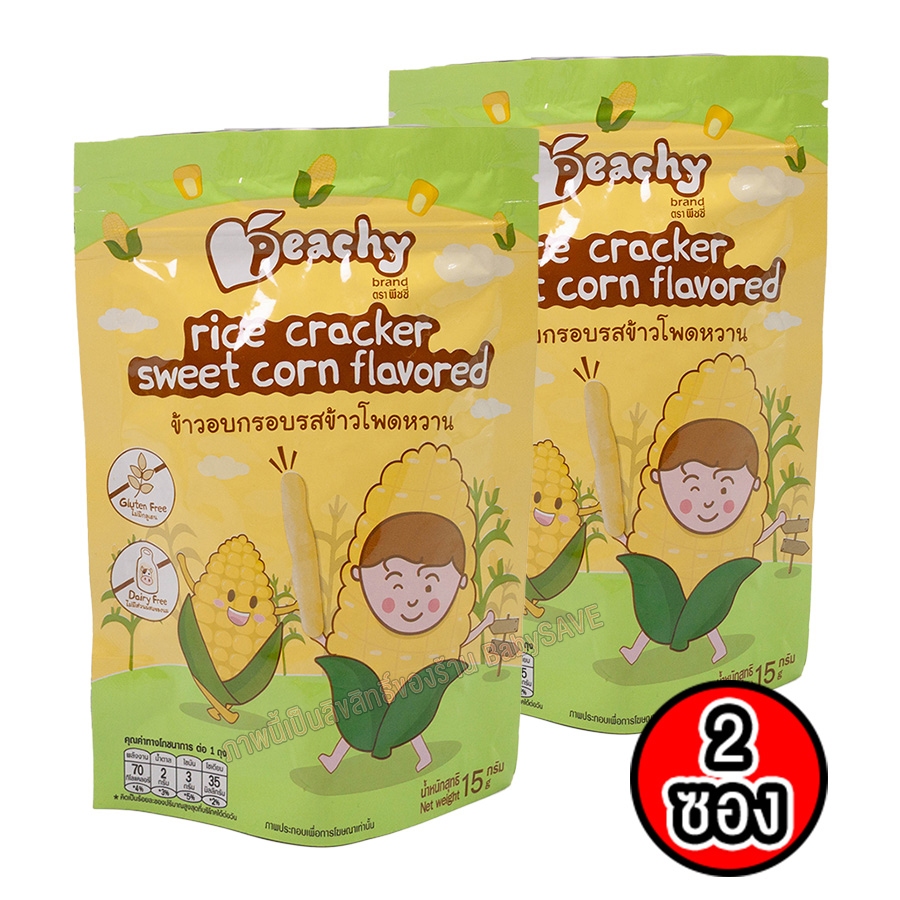 Peachy ข้าวอบกรอบ รสช็อกโกบาน่า และ ข้าวอบกรอบ รสข้าวโพดหวาน
