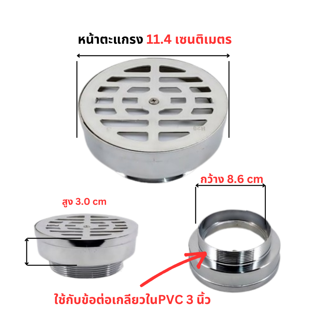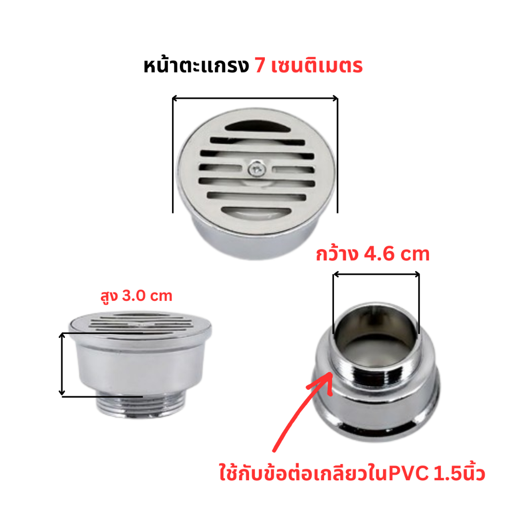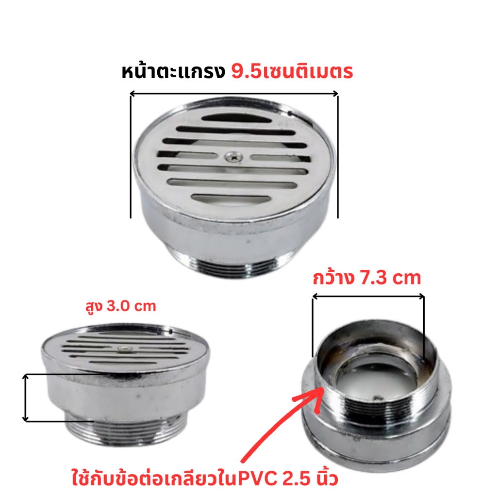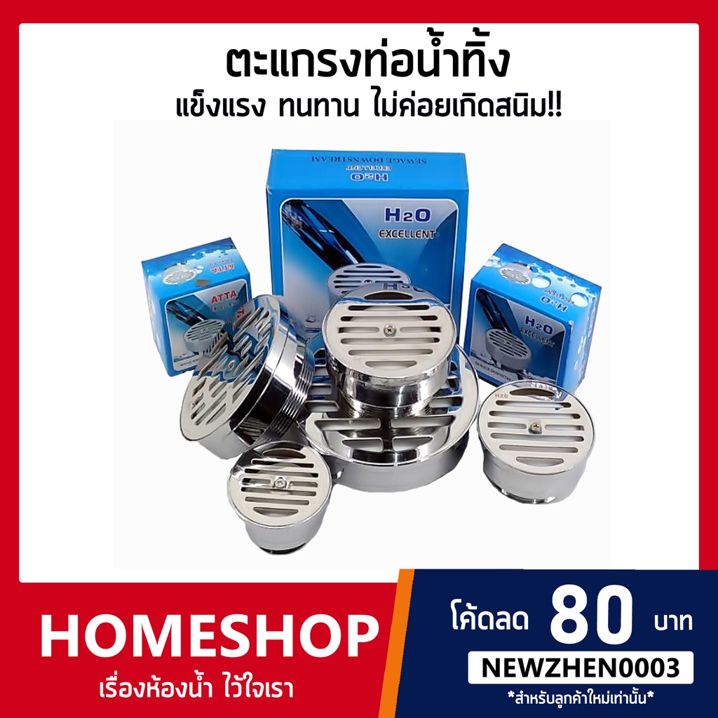ชุดตะแกรงท่อน้ำทิ้ง กันกลิ่น ขนาด 1.5นิ้ว / 2นิ้ว / 2.5นิ้ว / 3นิ้ว / 4นิ้ว H2O ทนทาน!! FDHS-607