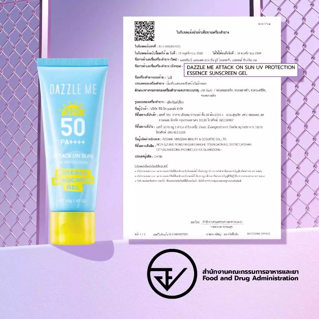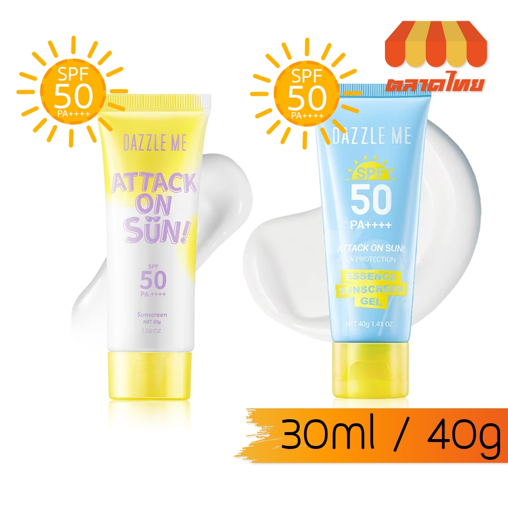 แดซเซิล มี ครีมกันแดด เนื้อครีม เนื้อเจล เบาสบายไม่เหนอะหนะ DAZZLE ME Attack on Sun Sunscreen SPF50 PA ++++ 30g./40g.