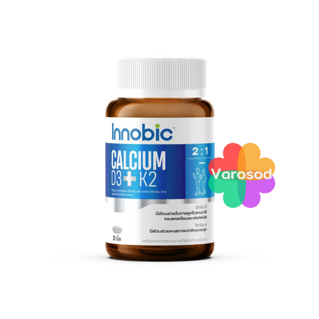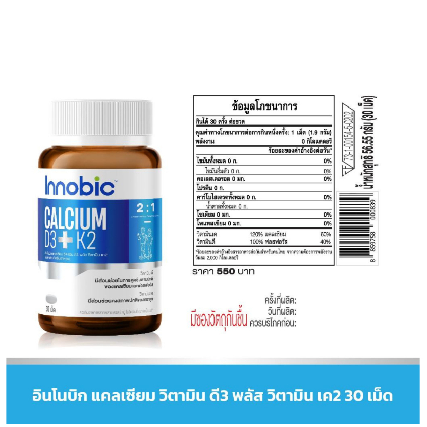 Innobic Calcium, Vitamin D3 + Vitamin K2 อินโนบิก แคลเซียม วิตามินดี 3 พลัส วิตามินเค 2 =30 เม็ด