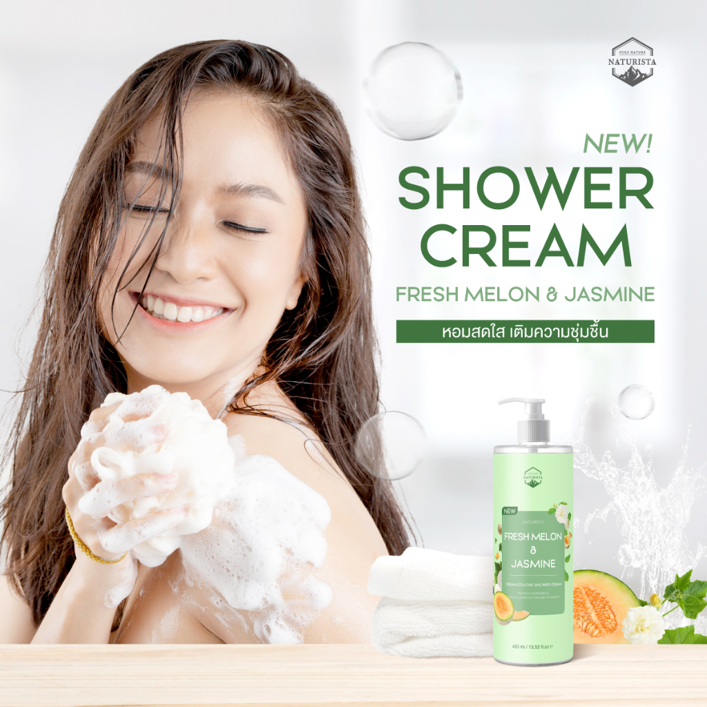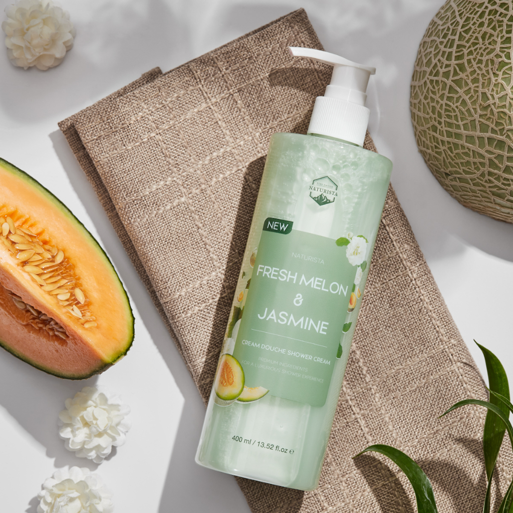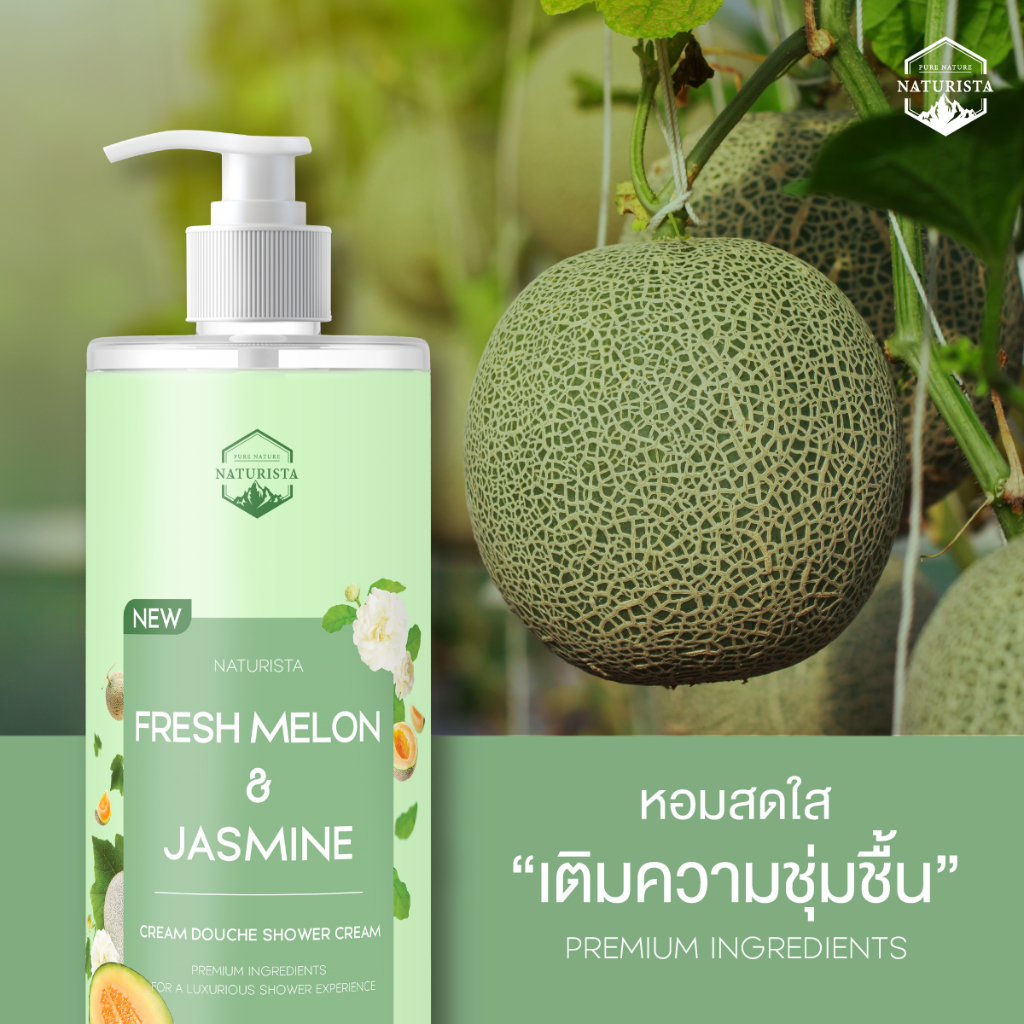 Naturista ครีมอาบน้ำกลิ่นหอมสดใสช่วยให้ผิวเนียนนุ่มน่าสัมผัส Fresh melon&Jasmine shower cream 400ml.