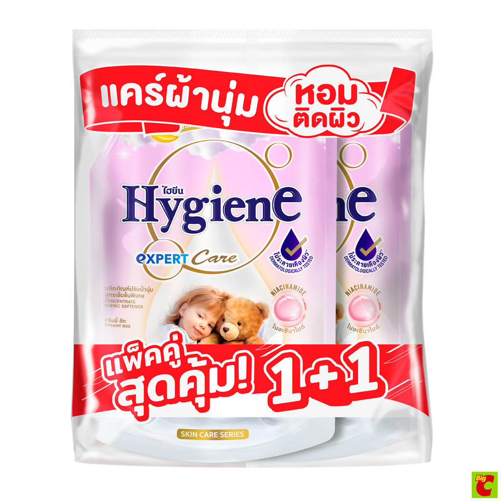 ไฮยีน เอ็กซ์เพิร์ท แคร์ น้ำยาปรับผ้านุ่มสูตรเข้มข้นพิเศษ ดรีมมี่ ฮัก 1000 มล. แพ็ค 1+1