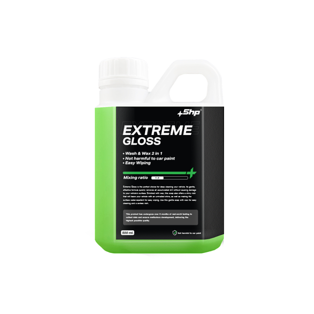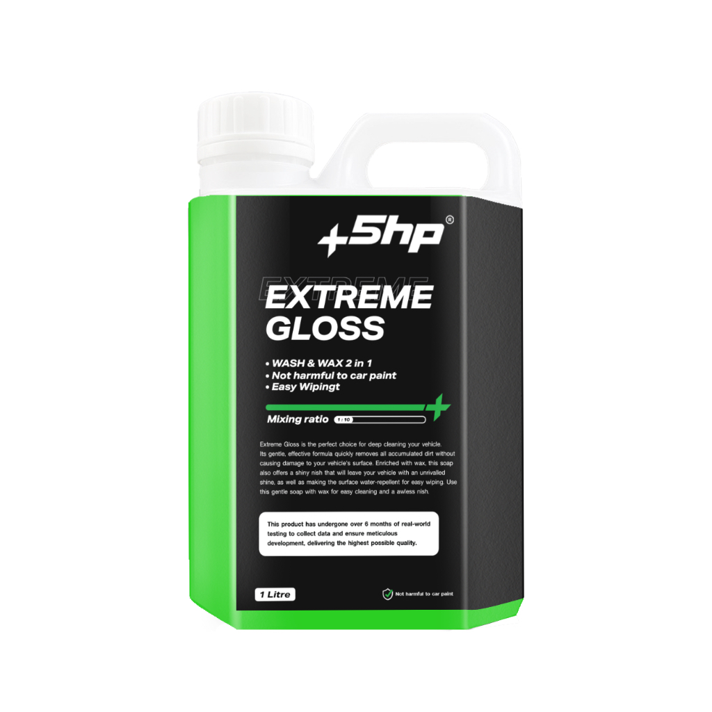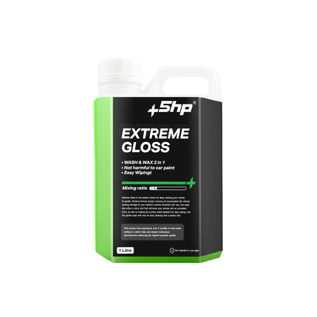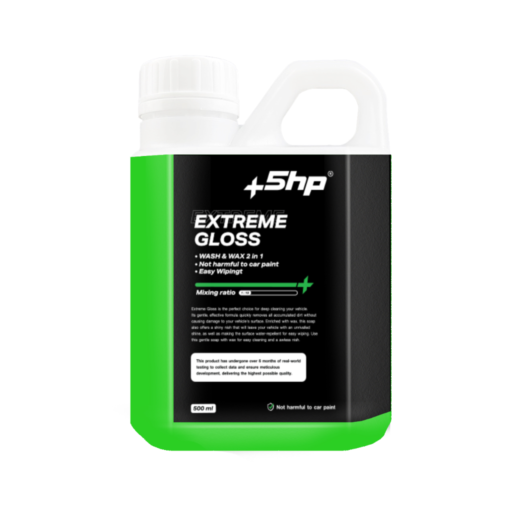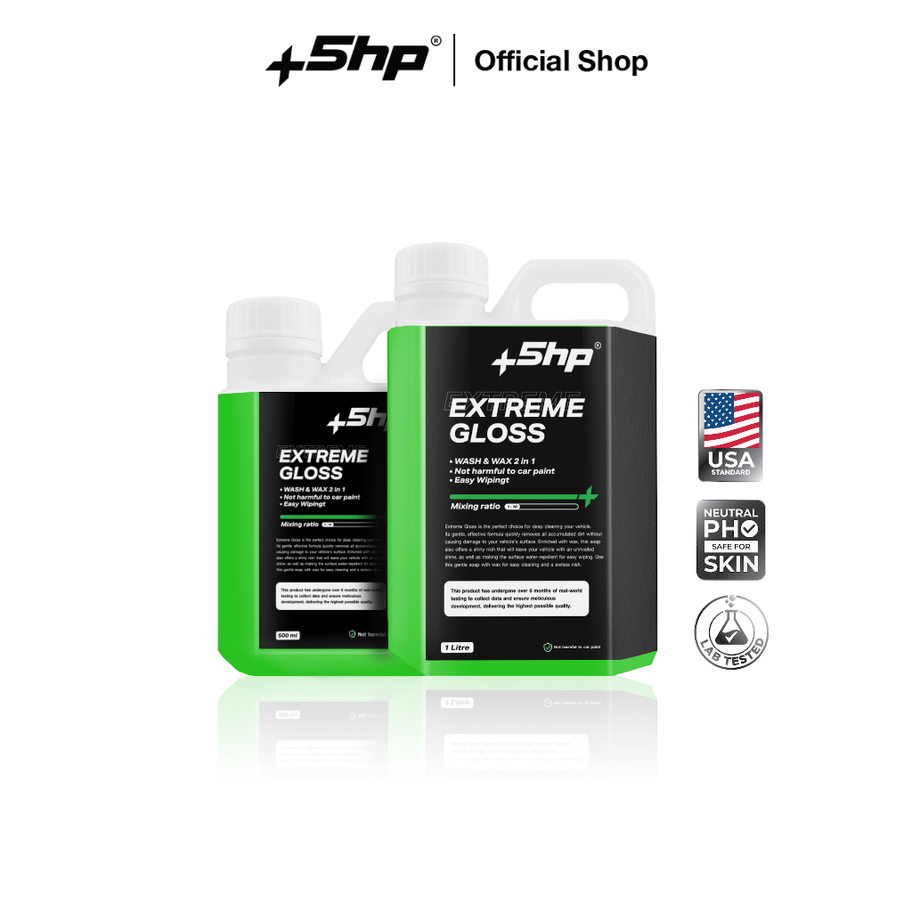 +5hp แชมพูล้างรถ ไม่กัดสี สูตรผสม Ceramic Wax ปลอดภัยต่อเคลือบแก้ว Extreme Gloss