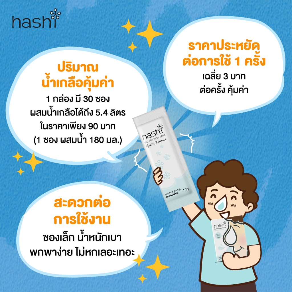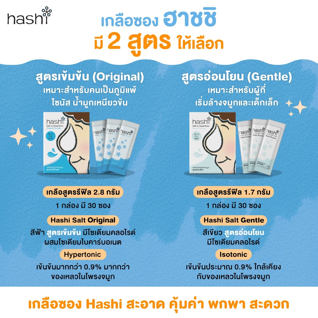 [2 กล่อง] ล้างจมูก Hashi Salt for Nasal Rinse Original/Gentle Formula ฮาชชิ เกลือล้างจมูก [30 ซอง]