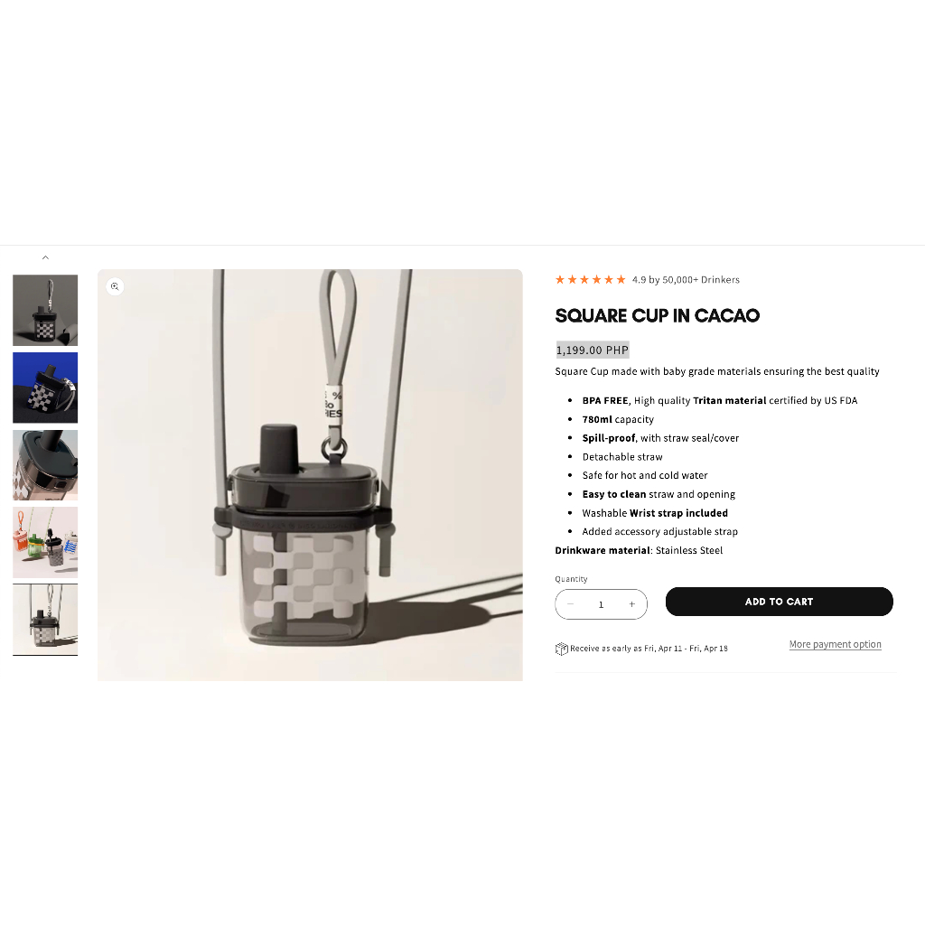 CHAKOLAB 780ML BOBO STRAW CUP SQUARE BLACK/GREY (พร้อมส่ง)