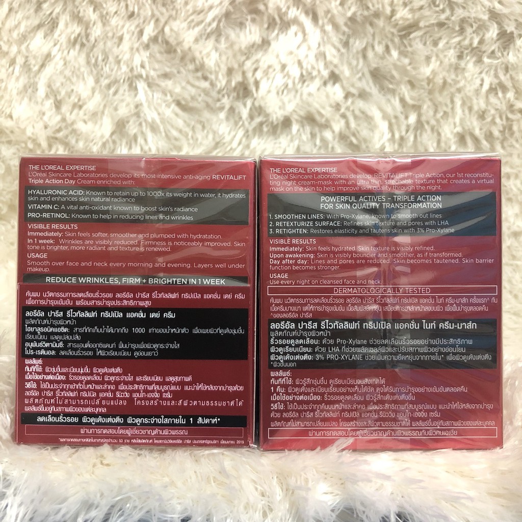 ลอรีอัล ปารีส รีไวทัลลิฟท์ ทริปเปิล แอคชั่น กลางวันและกลางคืน Loreal Paris REVITALIFT Triple Action 50ml แพ็คคู่
