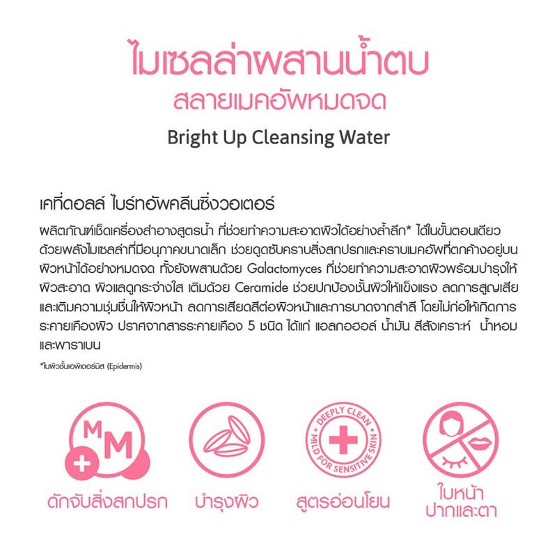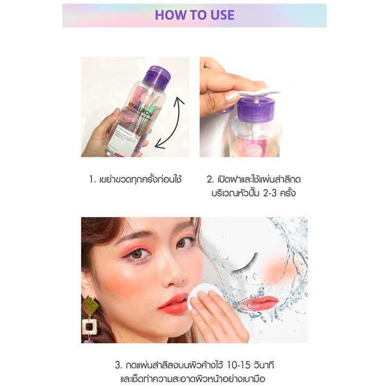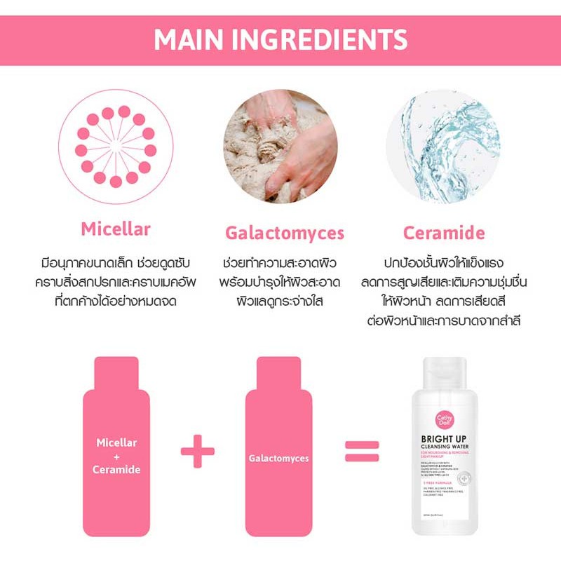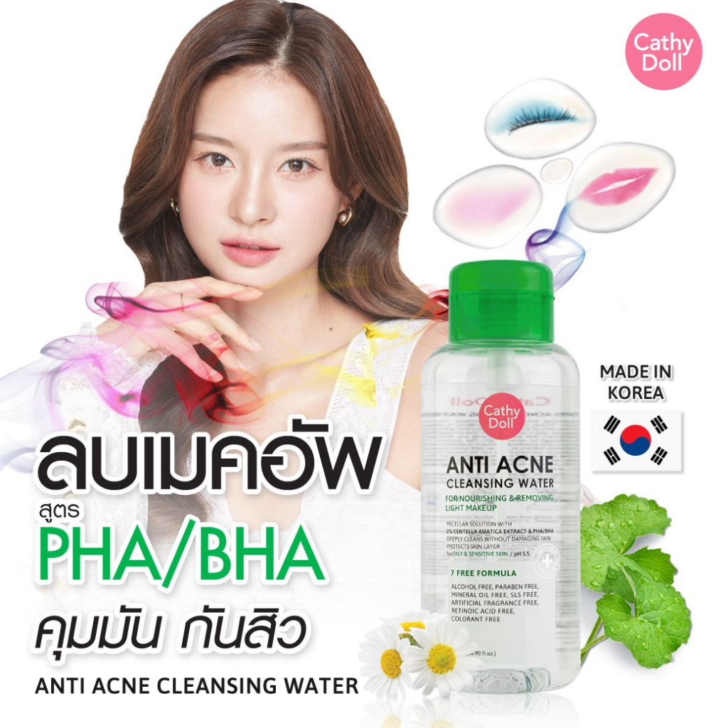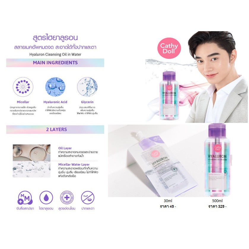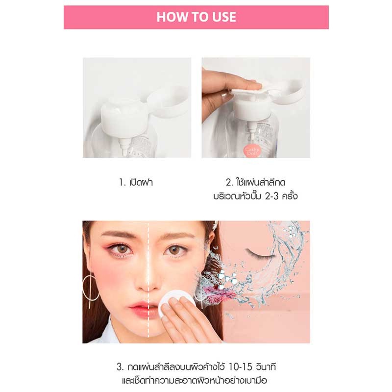 (แบบขวด) Cathy Doll Hyaluron / Bright Up / Anti Acne Cleansing Water 500ml. เคที่ดอลล์ คลีนซิ่งทำความสะอาดหน้า