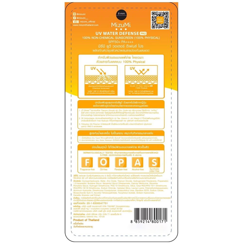 MizuMi UV Water Defense SPF50+ PA++++ 8g (สีส้มเล็ก) ออกแดดได้ทันที