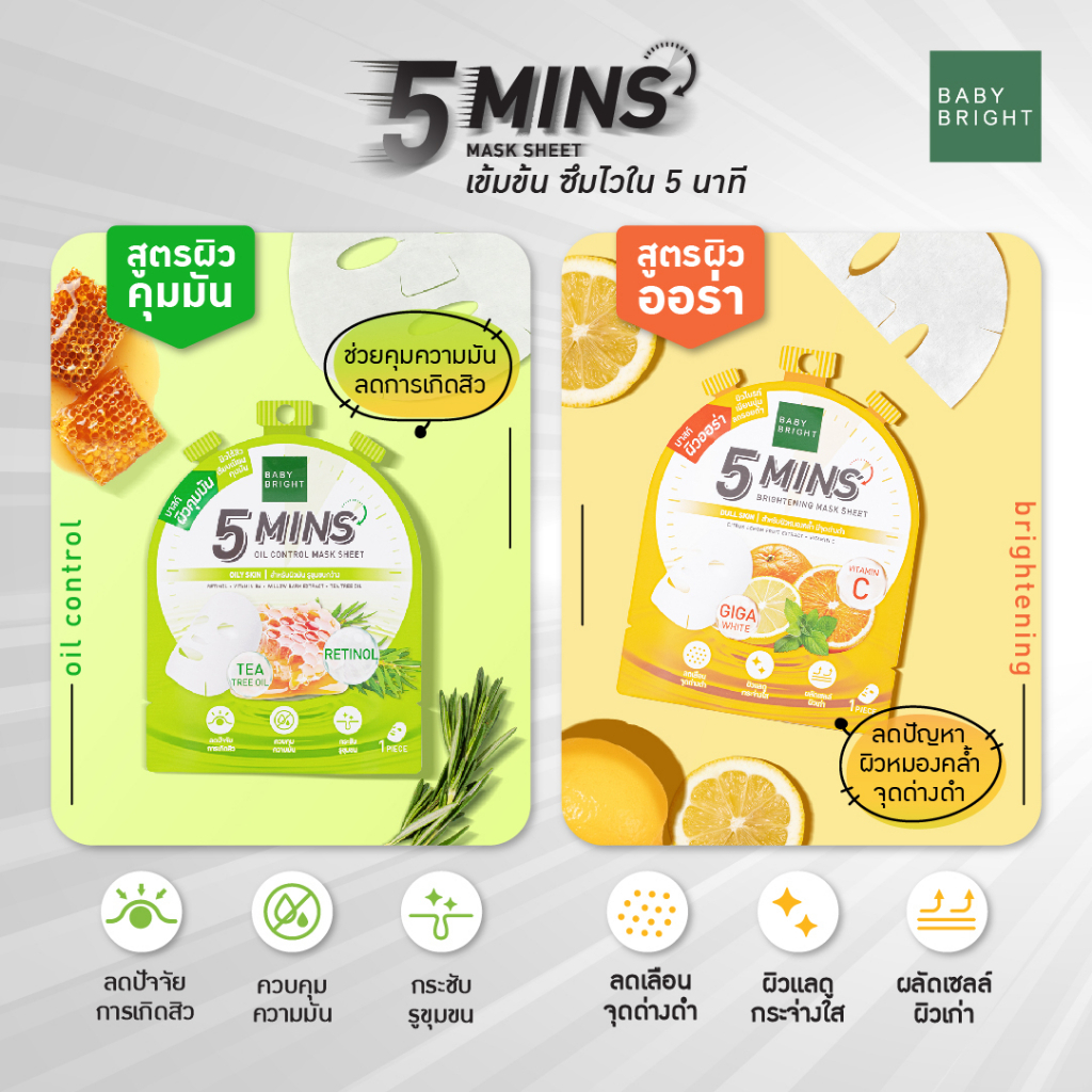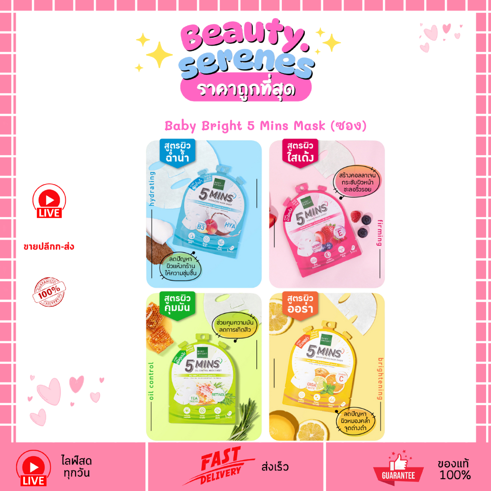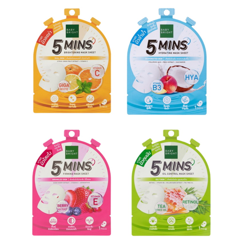 (1 แผ่น) Baby Bright มาส์กหน้า5นาที สูตร Oil Control / Brightening / Firming /Hydrating