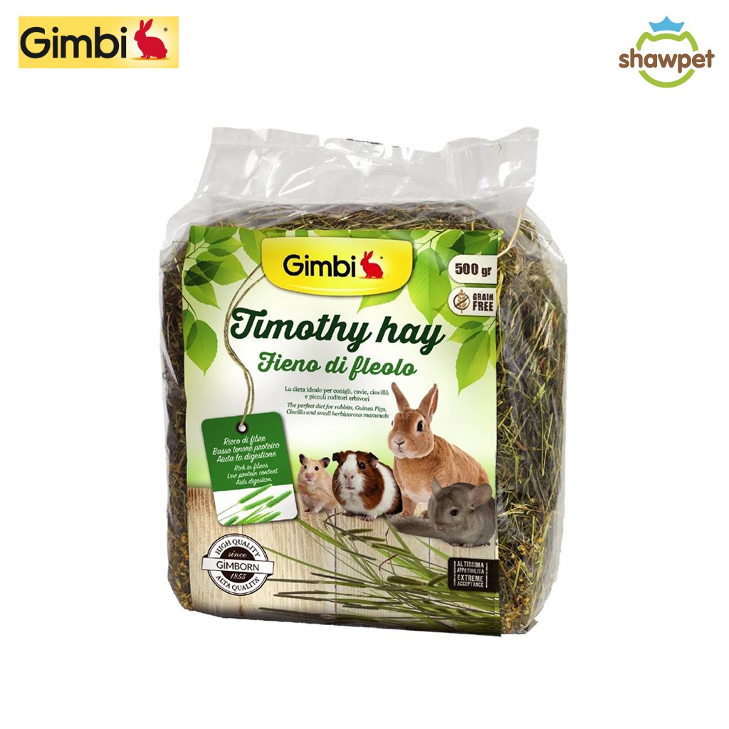 Gimbi หญ้าเฮย์ เหมาะสำหรับหนูตะเภาและกระต่ายอายุ 3 เดือนขึ้นไป Gimbi Timothy Hay 500G