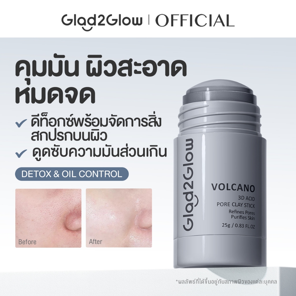 Glad2Glow Volcano 3D Acid Pore Clay Stick มาร์คหน้า แผ่นมาร์คหน้า มาร์ค clay mask