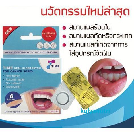 แผ่นปิดแผลในปาก Time Oral Ulcer Patch 1.5 Cm. แผลร้อนใน แผลในปาก ร้อนใน เหล็กติดฟัน ถูกสุด