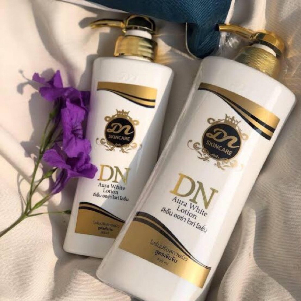 (โลชั่นDN 1 แถมกันแดด DN1) DN Aura White Lotion ดีเอ็น ออร่า ไวท์ โลชั่น (ขวดขาวหัวปั้มสีทอง )