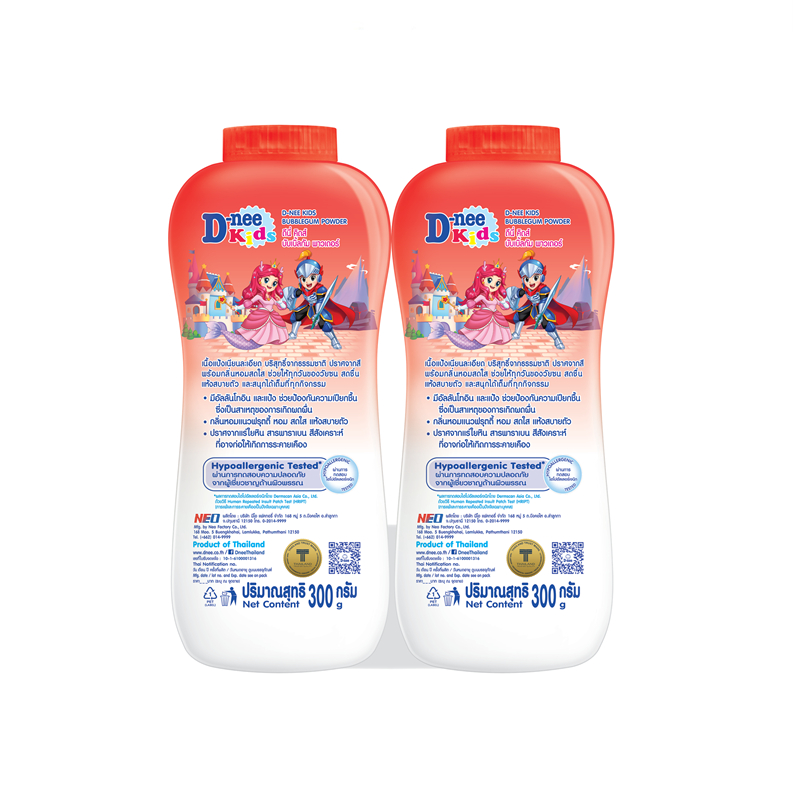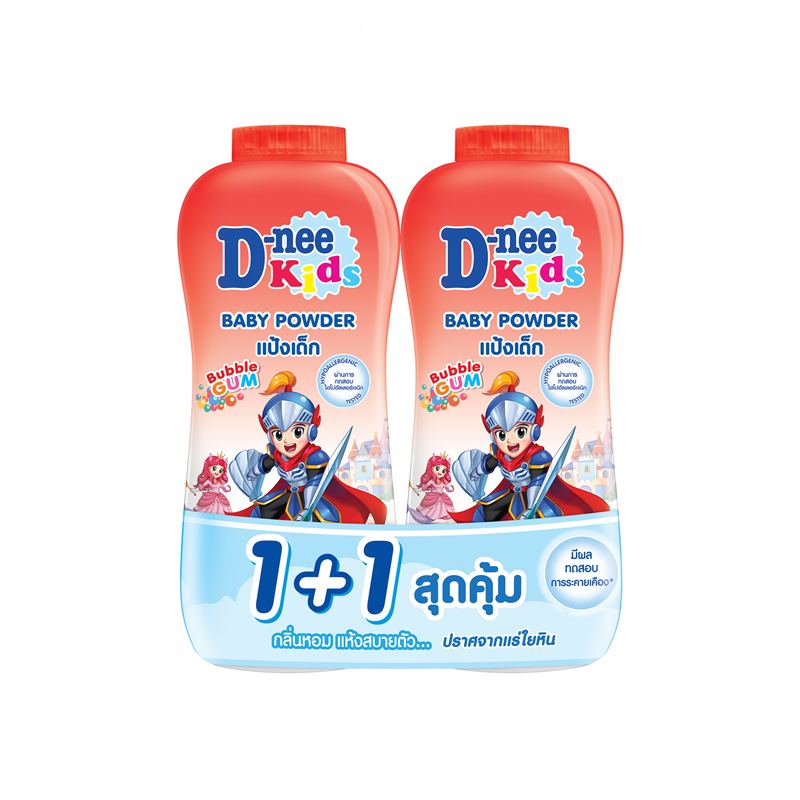 [แพ็คคู่] D-nee ดีนี่ คิดส์ แป้งเด็ก กลิ่นบั๊บเบิ้ลกัม 300+300 กรัม