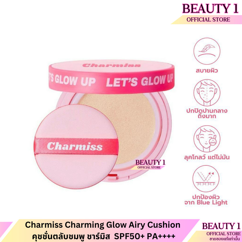 1 ตลับ Charmiss Charming Glow Airy Cushion คุชชั่นตลับชมพู ชาร์มิส SPF50+ PA++++