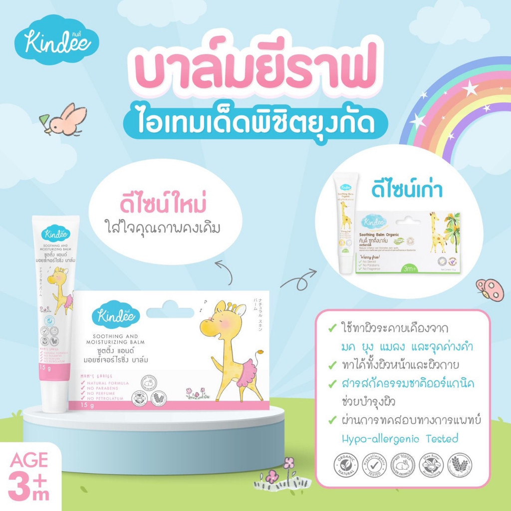 Kindee บาล์มลดคัน จากยุงมดแมลงกัด สำหรับเด็ก ช่วยลดการระคายเคือง ลดรอยดำจากยุงกัด สำหรับเด็ก 3 เดือนขึ้นไป คินดี้