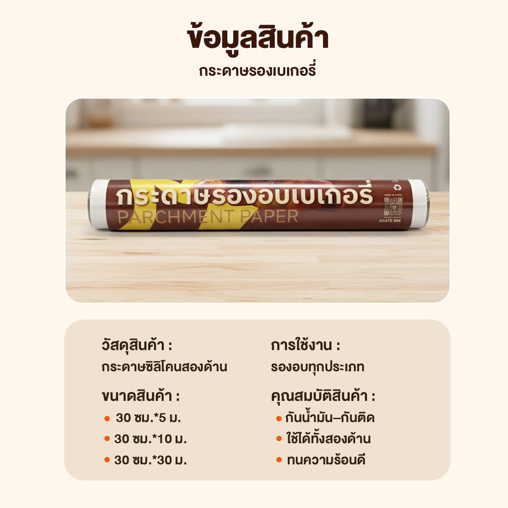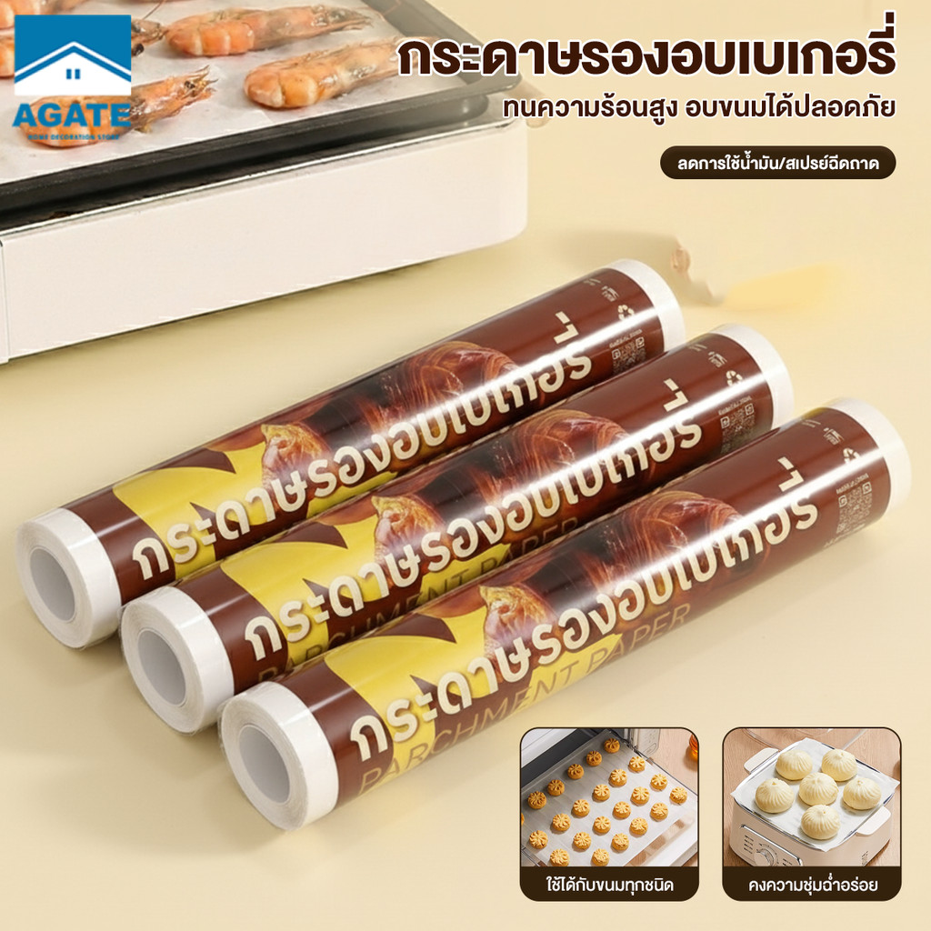 【Agate ของแท้】กระดาษไข กระดาษซิลิโคน ใช้งานได้สองด้าน กันน้ำและกันน้ำมัน ทนความร้อนสูง สำหรับใส่อาหาร(5,10,30 เมตร)