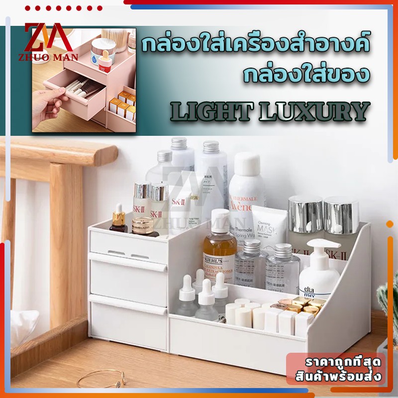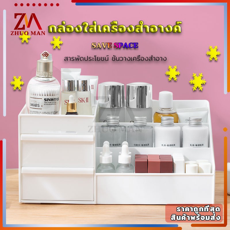 กล่องใส่เครื่องสำอางค์ ขนาดใหญ่28.5cmกล่องใส่ของ กล่องเก็ บของ สารพัดประโยชน์ มีลิ้นชัก ช่องหลายช่องแยกและจัดระเบียบแปรงข