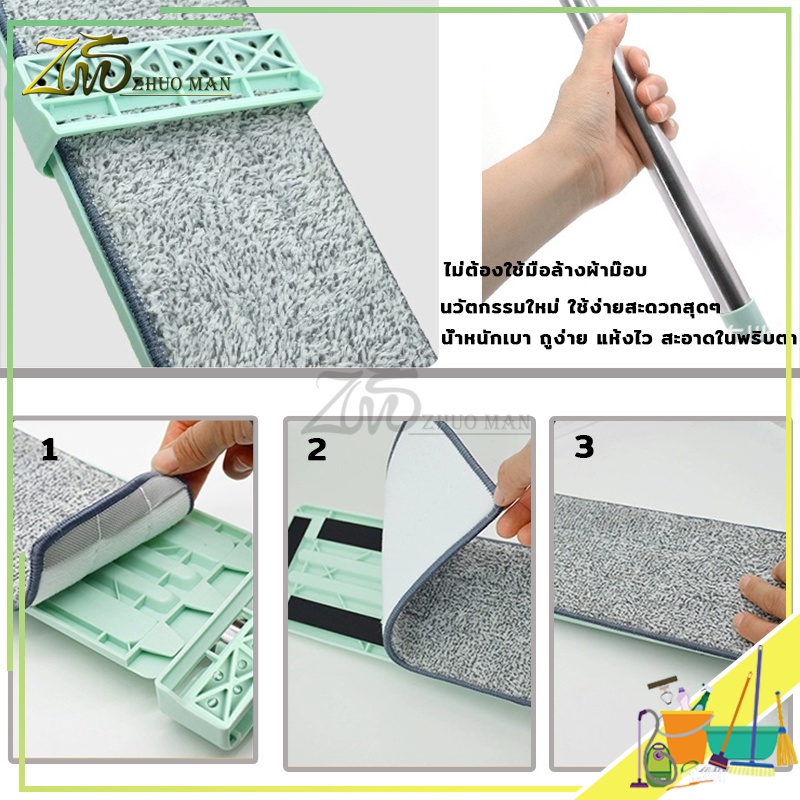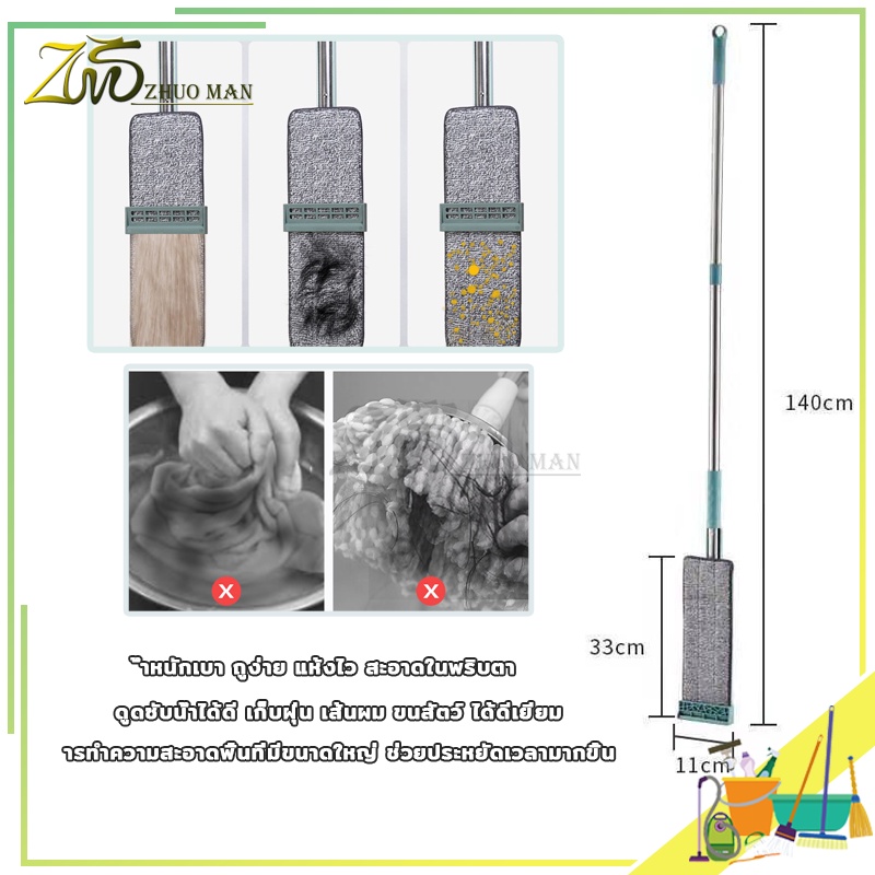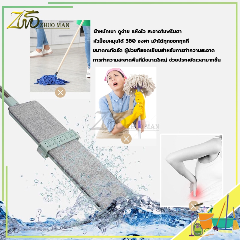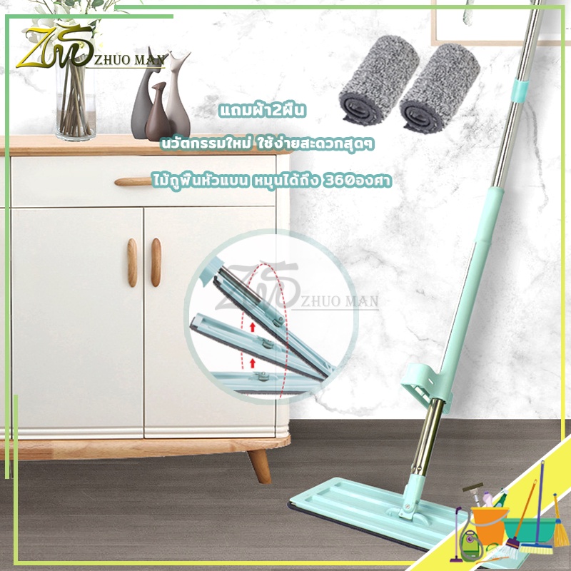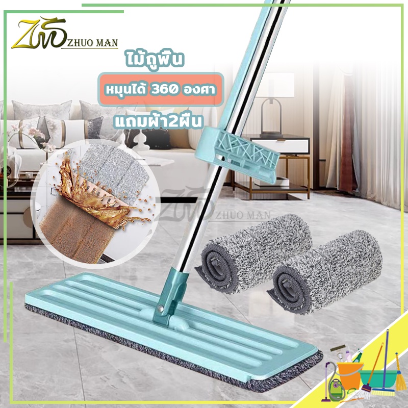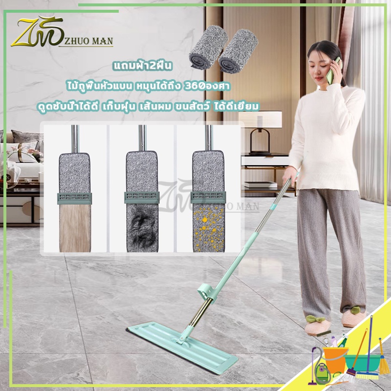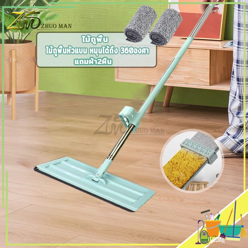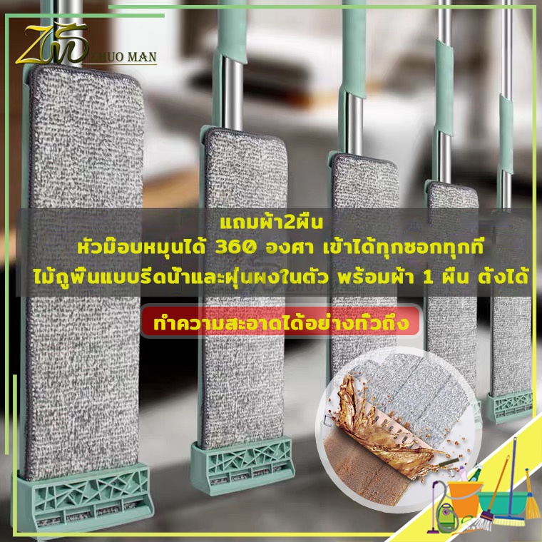 ไม้ถูพื้นรีดน้ำ ไม้ถูพื้น ม๊อบถูพื้น ไม้ถูพื้นแบบรีดน้ำและฝุ่นผงในตัวหมุนได้360องศา แถมผ้า2ผืน ถูง่ายสบายมือ