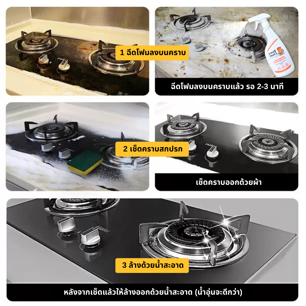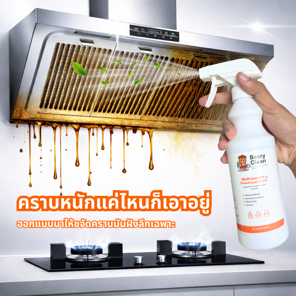 ครัวสกปรกมีคราบฝังแน�? Beary Clean ตัวช่วยใหม่! สเปรย์โฟมขจัดคราบหนักในครัว ปลอดภัย ไม่ฉุน ใช้สะดวก พื้นผิวสะอาดเหมือนให