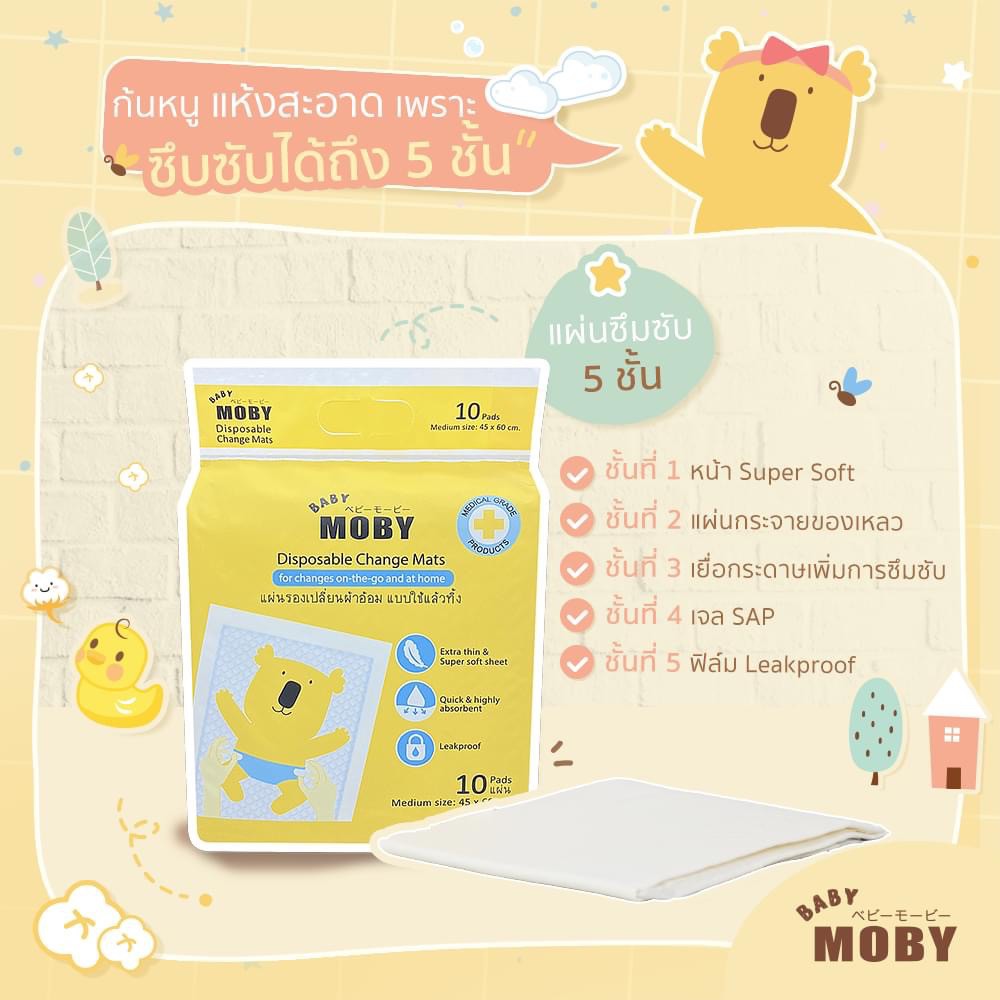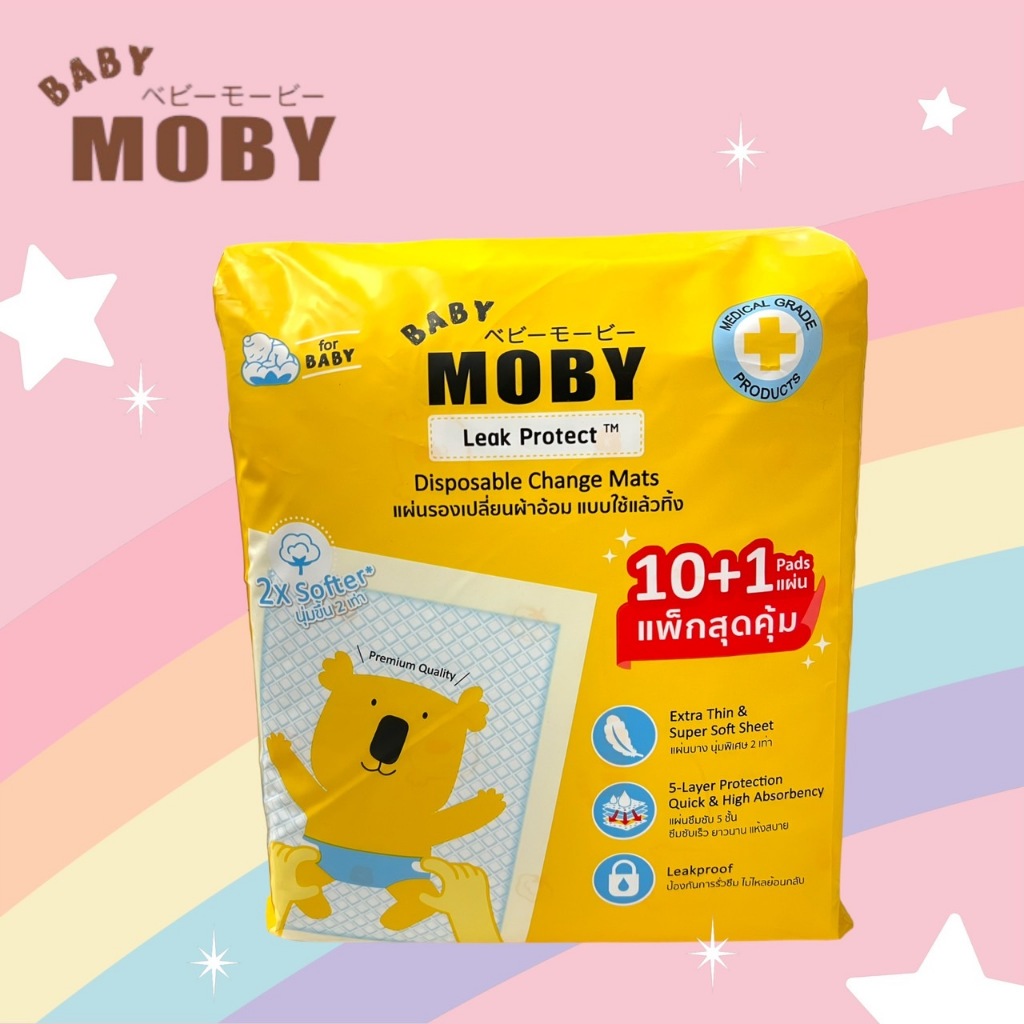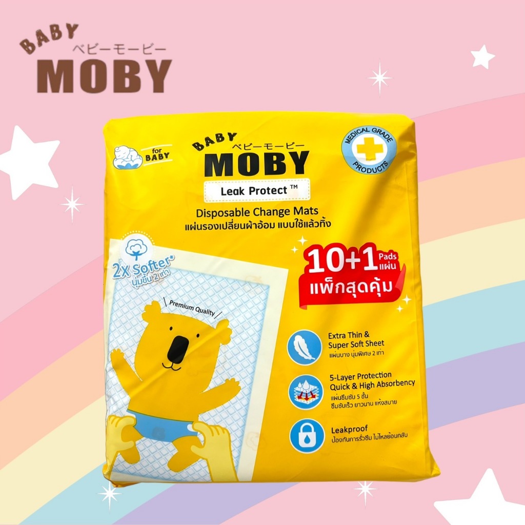 moby แผ่นรองซับ10+1ชิ้น Disposable Baby Underpads ขนาด 45*60 cm