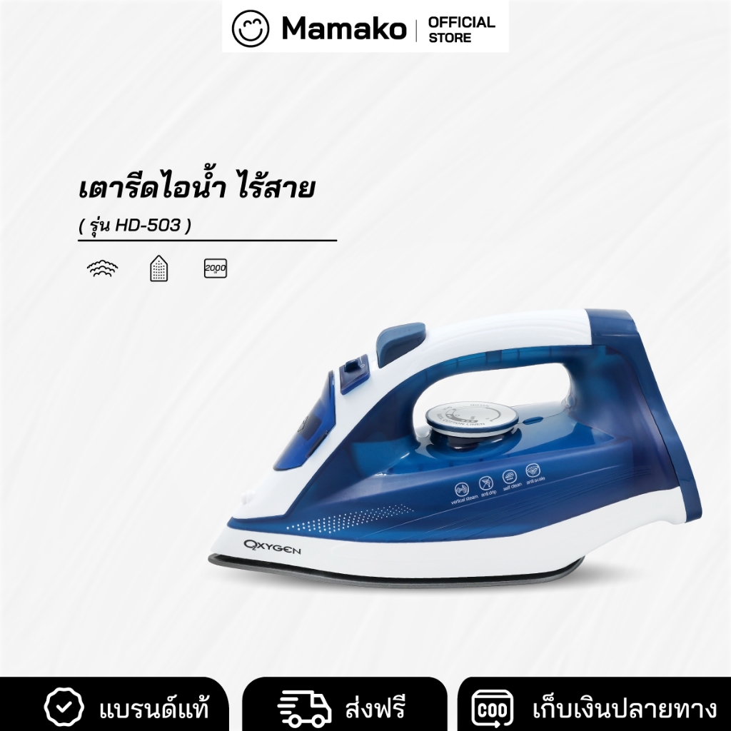 [โค้ดไลฟ์ลด20-40%] เตารีดไอน้ำไร้สาย 2000 วัตต์ Oxygen รุ่น HD-503 เตารีด