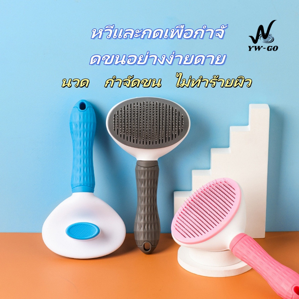 หวีกำจัดขนสัตว์เลี้ยง แปรงหวีขนสัตว์ ที่แปรงขนสุนัข แมว หวีสัตว์เลี้ยง มีปุ่มดันขนออก CW06