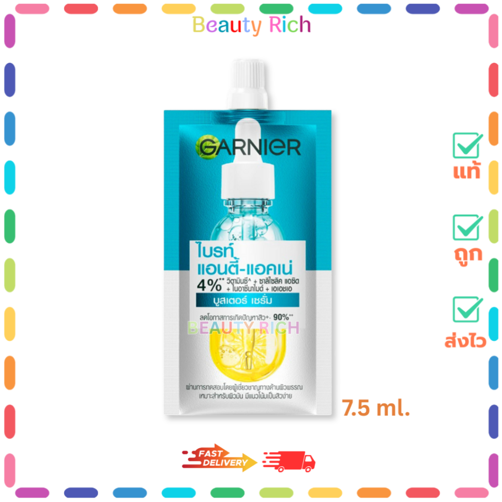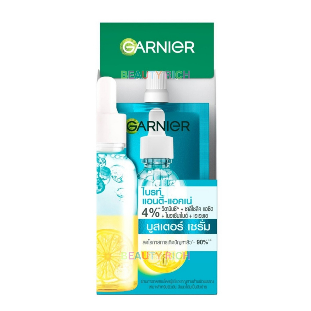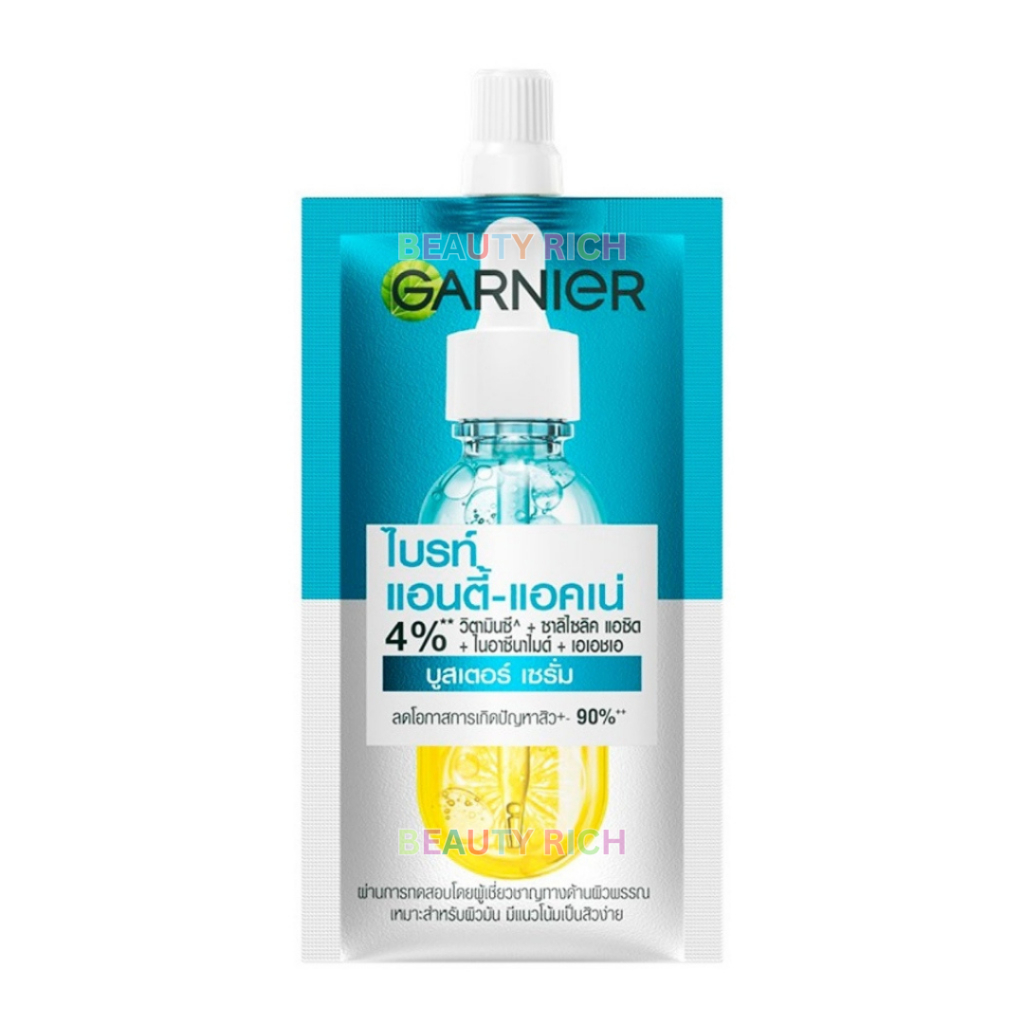 (1 ซอง) Garnier การ์นิเย่ ไบรท์ แอนตี้-แอคเน่ บูสเตอร์ เซรั่ม การ์นิเย่ (7.5 ml.)
