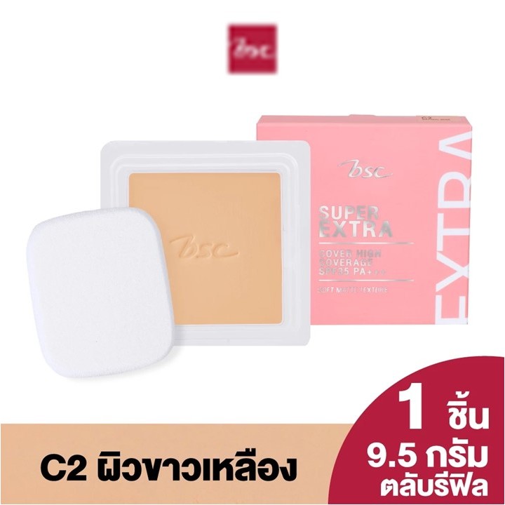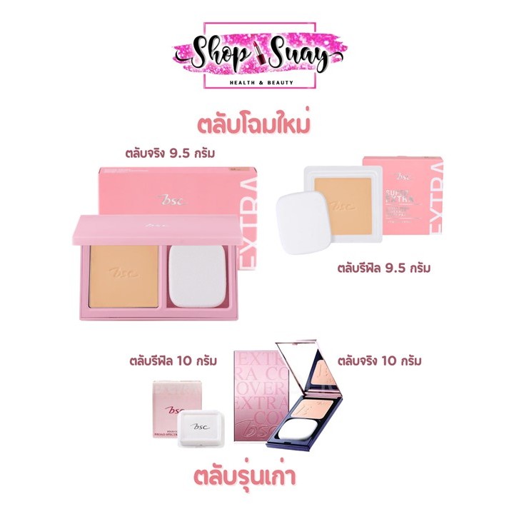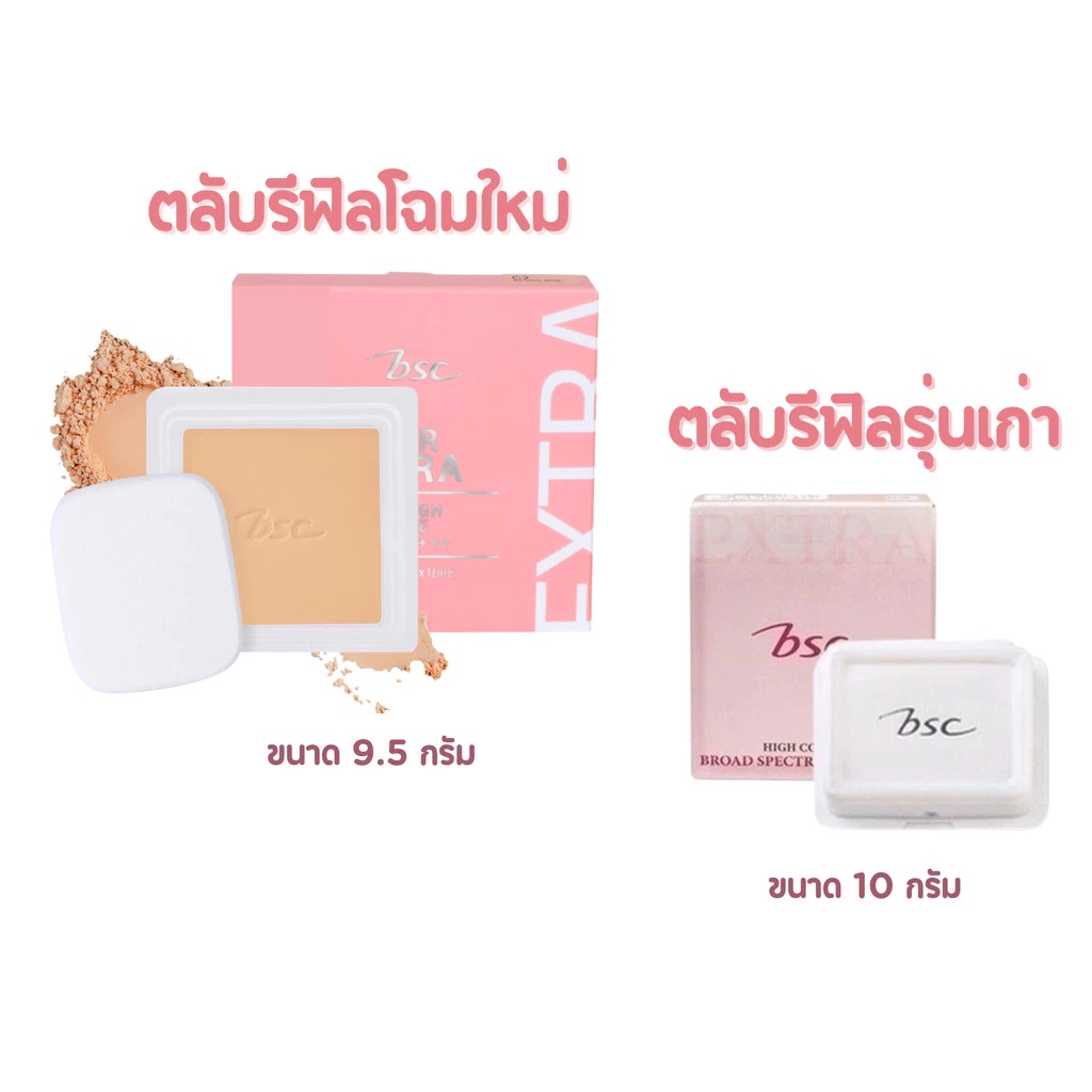 ** แป้งพัฟโฉมใหม่ ** BSC SUPER EXTRA COVER HIGH COVERAGE POWDER SPF 30 PA+++ 9.5 กรัม ( ตลับรีฟิล/ตลับจริง ) #ตลับชมพู