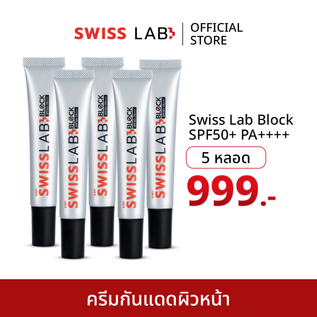 (5 หลอด) ครีมกันแดดสวิสแล็บบล็อก ซึมไว SPF50+ PA++++ SWISSLAB Block