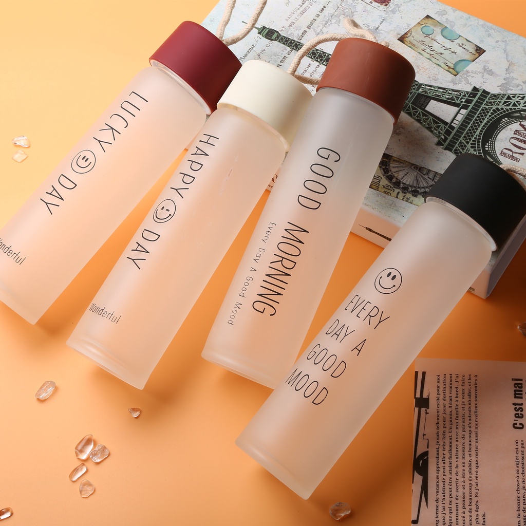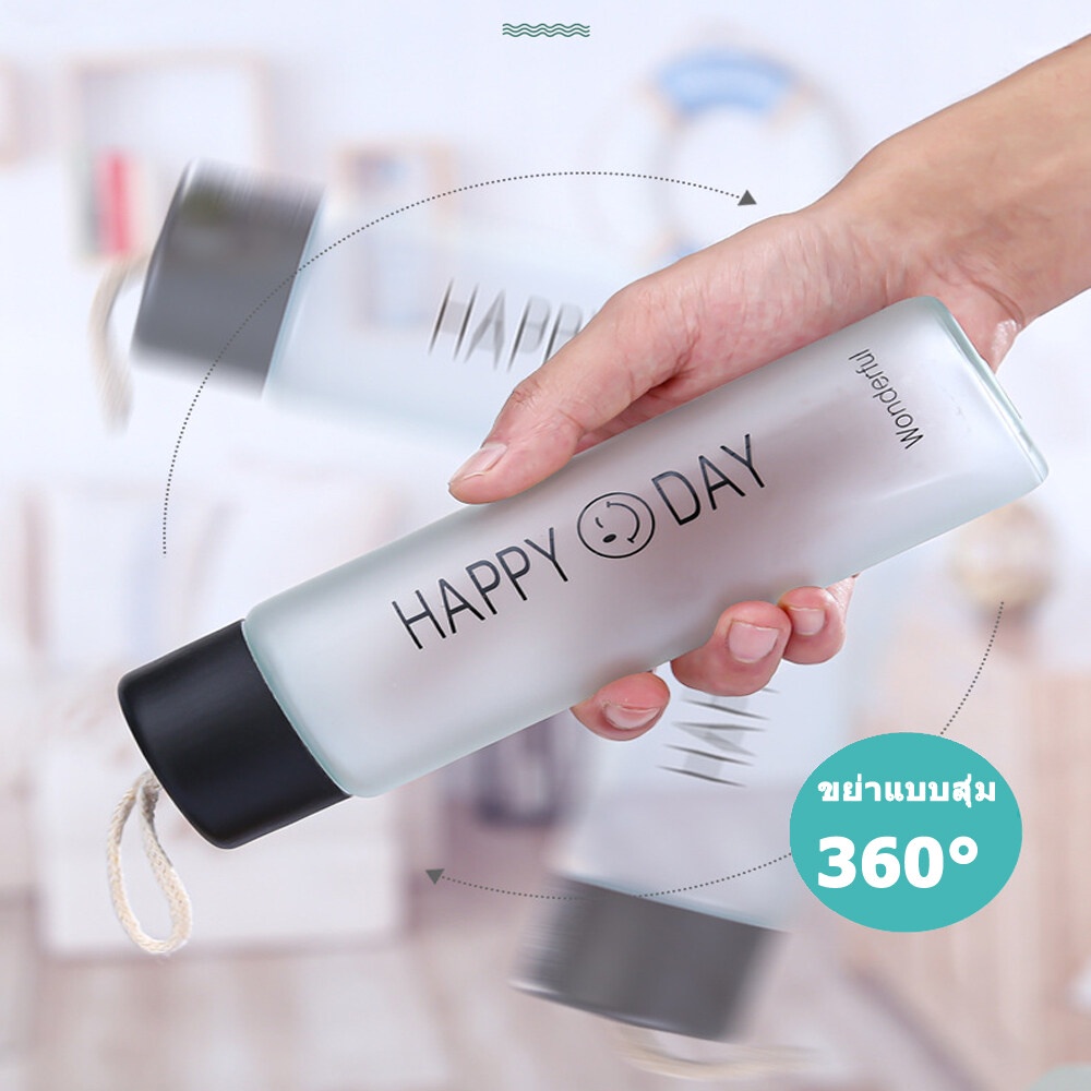 ขวดแก้วใส่น้ำดื่มพกพา กระบอกใส่น้ำ 400 ml Portable glass มีสายคล้องมือ พกพาสะดวก เดินทาง มีสายคล้องมือ พกพาสะดวก
