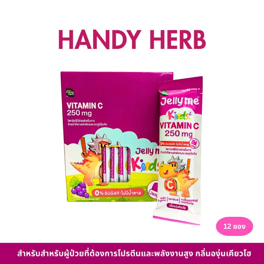 Handy Herb Jelly Me Keods วิตามินซี 250 มก. กลิ่นองุ่นเคียวโฮ (กล่องละ 12 ซอง)