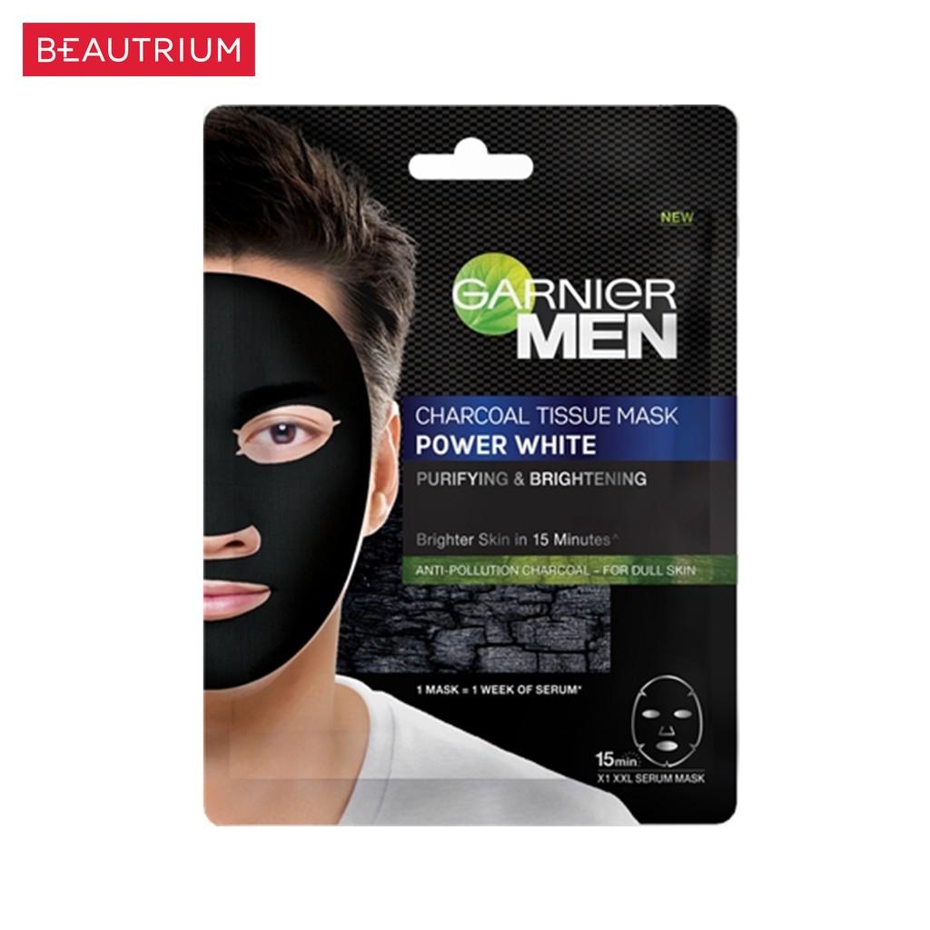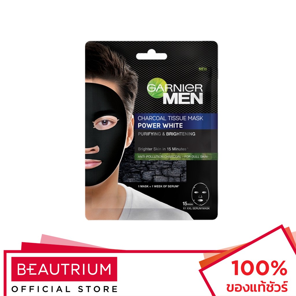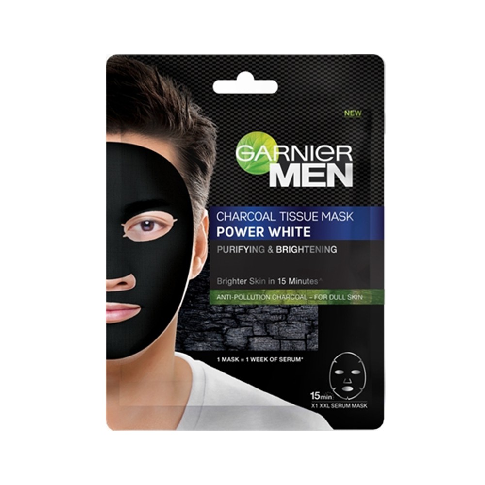 GARNIER Men Charcoal Tissue Mask Power White มาส์กแผ่น 28g