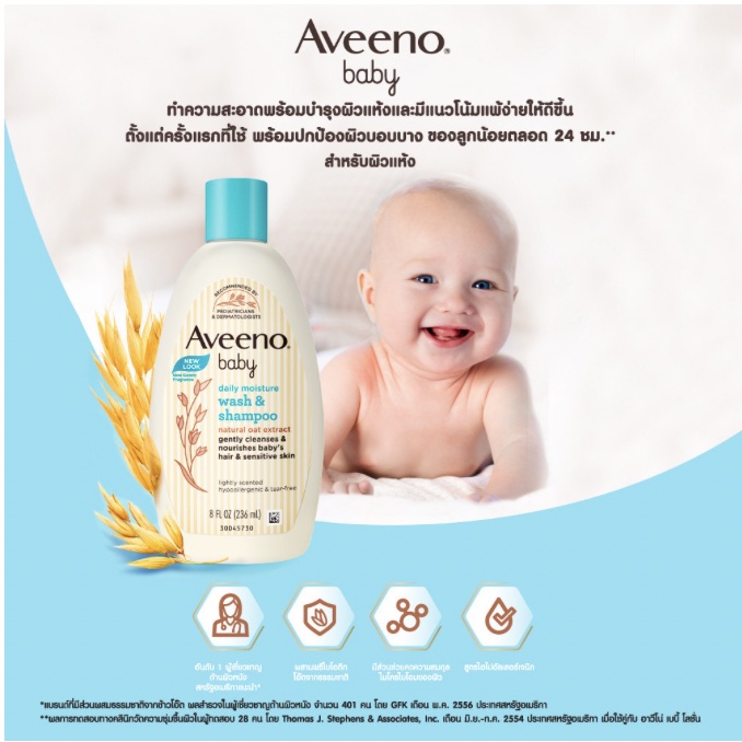 Aveeno Baby Wash & Shampoo 236 ml สบู่อาบน้ำและสระผม อาวีโน่ เบบี้ แอนด์แชมพู สำหรับเด็ก
