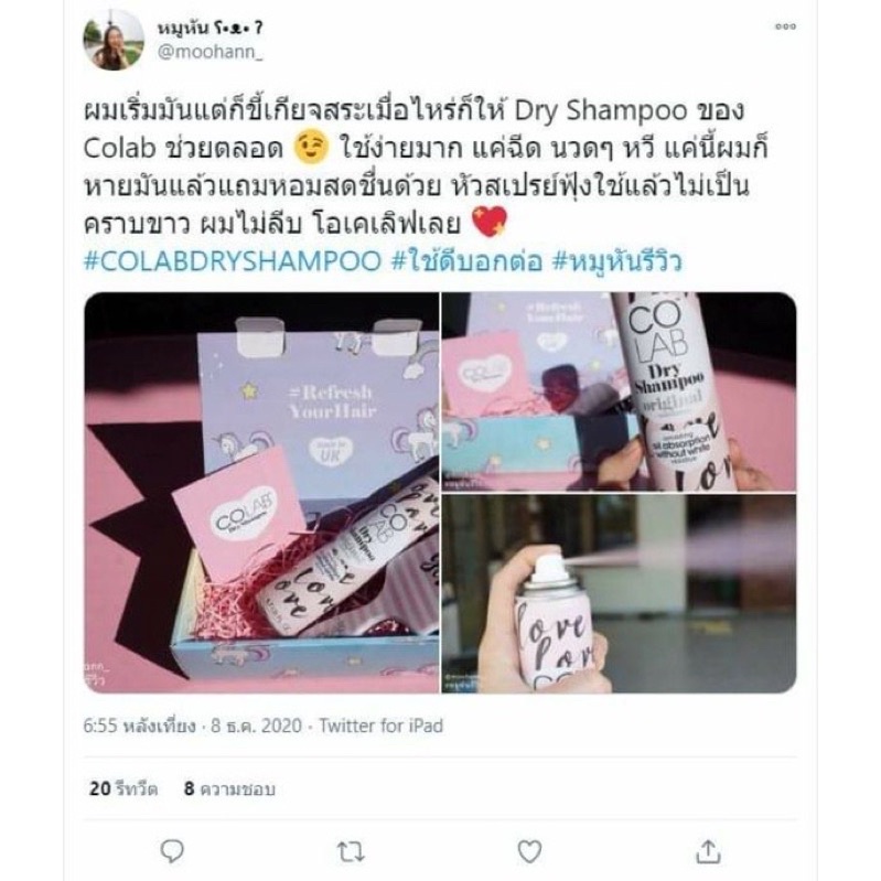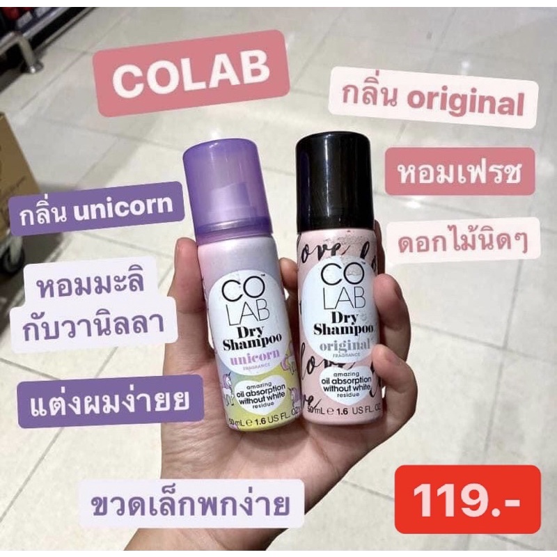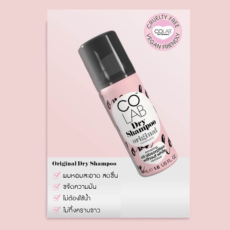 Colap Dry shompoo เสกผมหอม ลืมผมมีกลิ่น ไม่ทิ้งคราบขาว คุมมัน 24 ชม. แถมเพิ่มวอลลุ่มสวยเหมือนเพิ่งสระผมมาเลย ขนาด 50ml