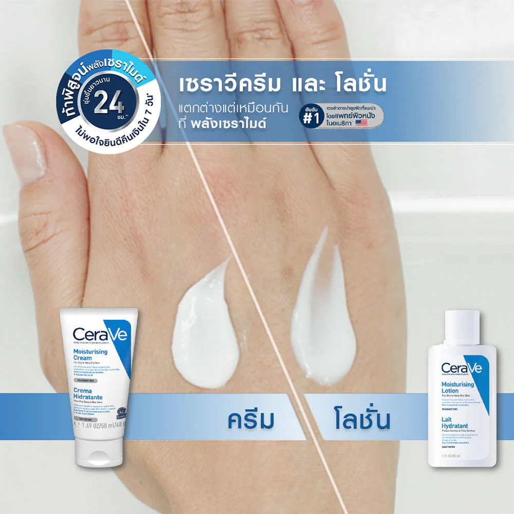 Cerave Moisturising Cream ครีมบำรุงผิวหน้าและผิวกาย สูตรสำหรับผิวแห้งถึงแห้งมาก แบบหลอด 50 ML.