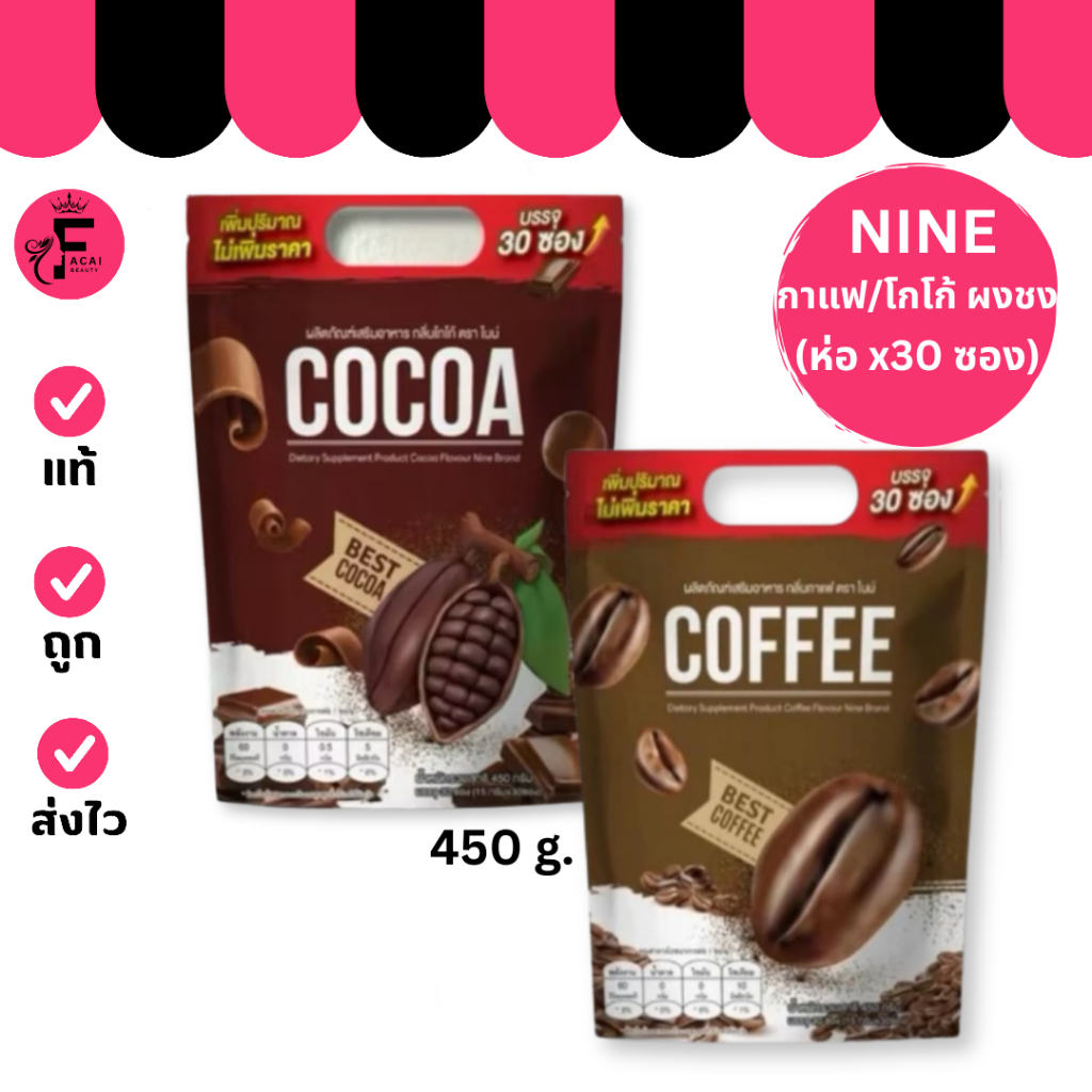 (1 ห่อ) NINE น้ำชง ไนน์ กาแฟ โกโก้ มีให้เลือก 2 สูตร (ปริมาณ 30 ซอง)