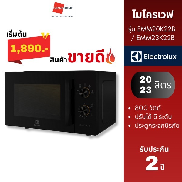 💥พร้อมส่ง💥 ELECTROLUX ไมโครเวฟ EMM23K22B 23L / EMM25D22BM 25L / EMM30D22BM 30L 800W | ประกัน 2 ปี